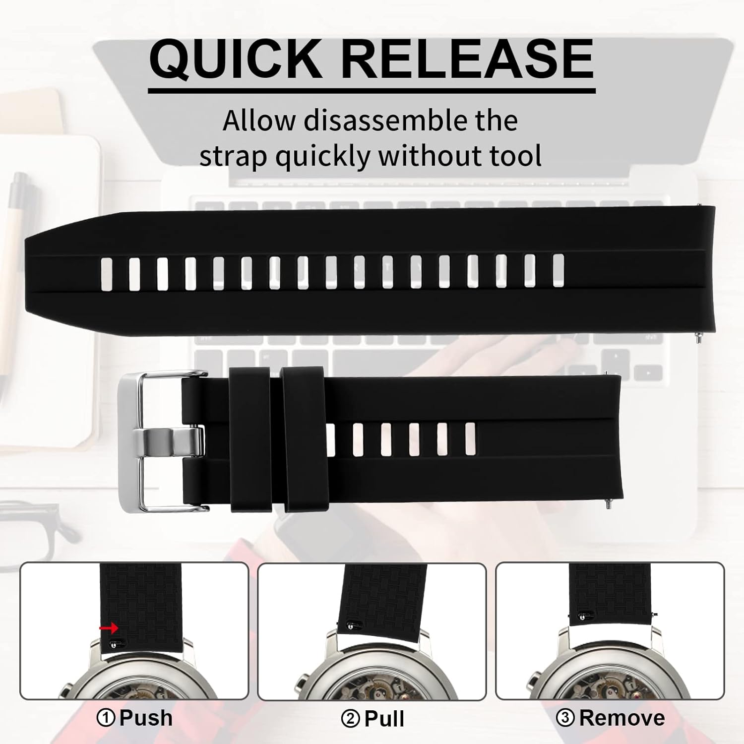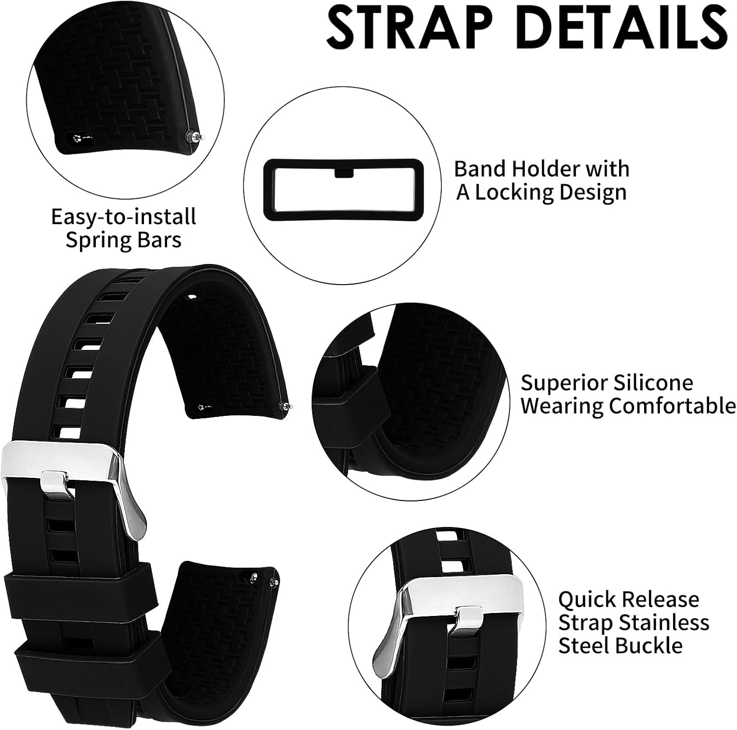 اساور ساعة سيليكون من كوبي – سريعة الفك – سوار ساعة بديل، سوار ساعة عالمي مقاوم للماء مع مشبك فضي للرجال والنساء متوافق مع اساور الساعات الذكية/الرياضية