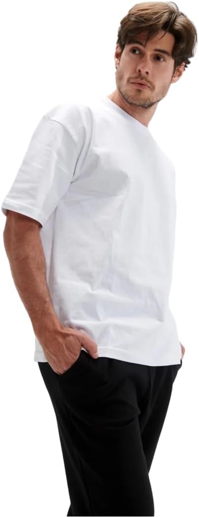 ايسنشيالز تي شيرت رجالي بمقاس كبير ولون ابيض (عبوة من قطعة واحدة)