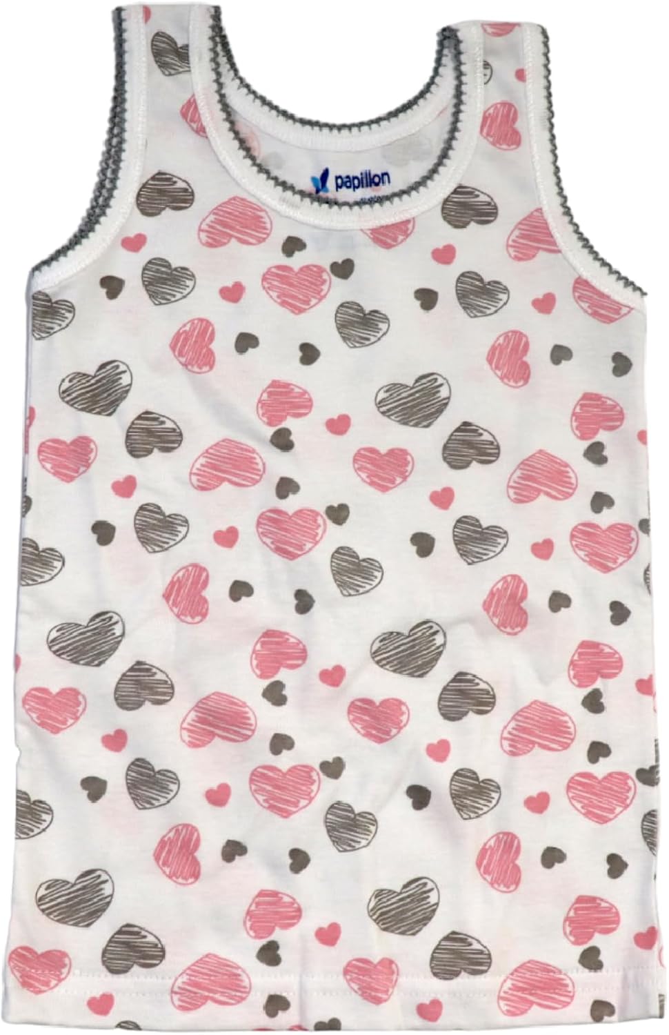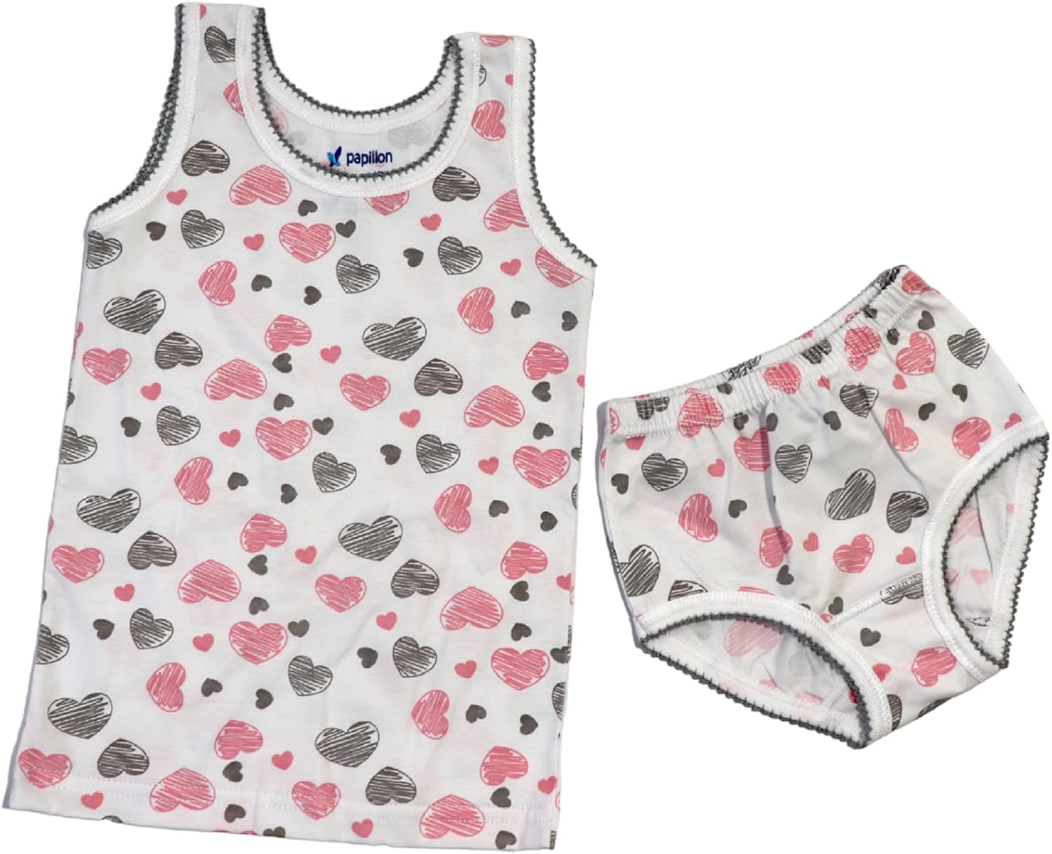 بابيلون طقم ملابس داخلية للبنات مكون من فانلة بدون اكمام وملابس داخلية بطبعة قلوب من قطعتين (عبوة من قطعة واحدة)