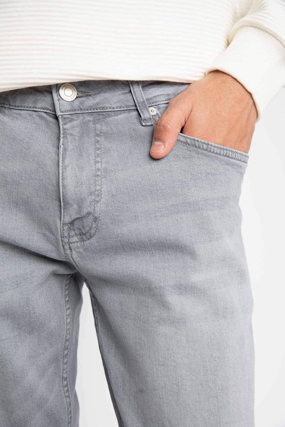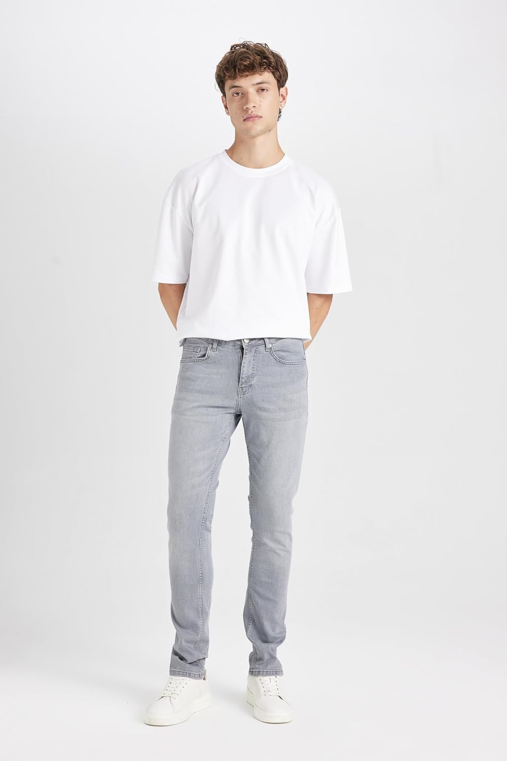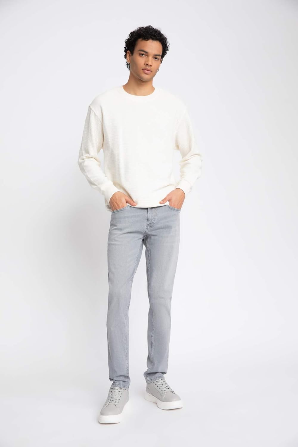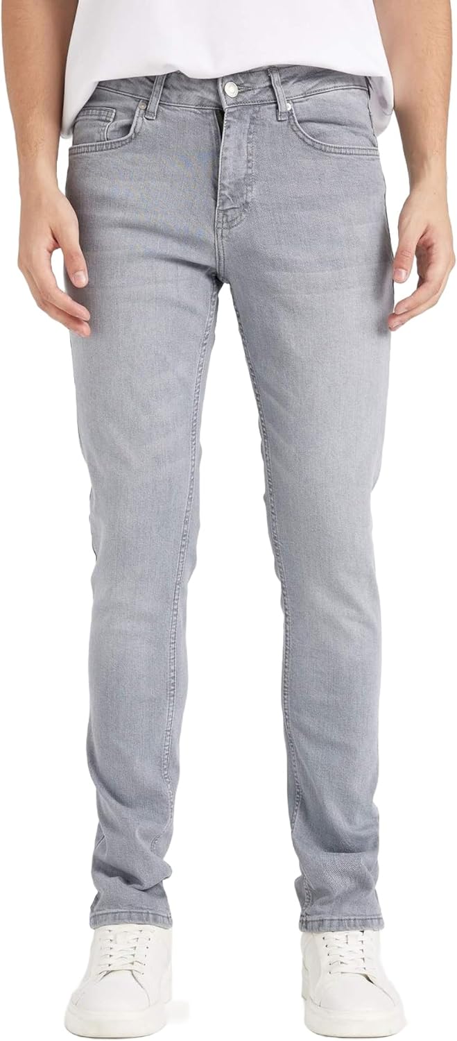 ديفاكتو بنطلون جينز بقصة ضيقة للرجال من بيدرو، لون رمادي فاتح