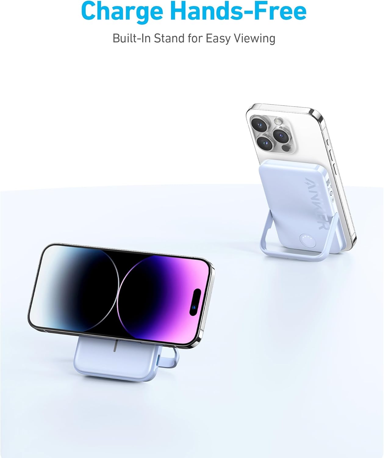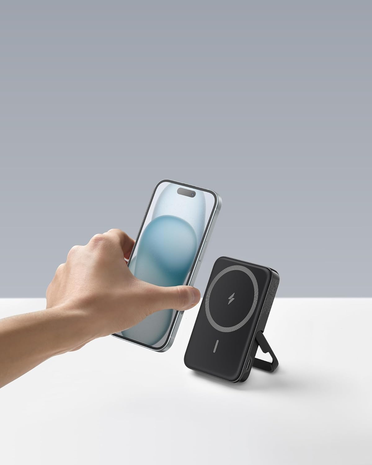 انكر باور بانك مغناطيسي ورفيع مع حامل قابل للطي 5000 مللي امبير في الساعة من ماج جو