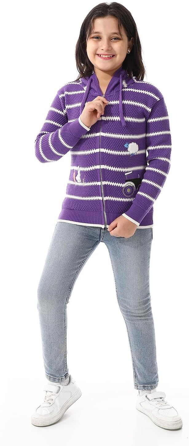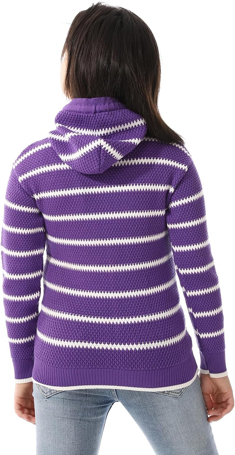 بلوفر مخطط برقبة بغطاء للرأس للبنات من اندورا