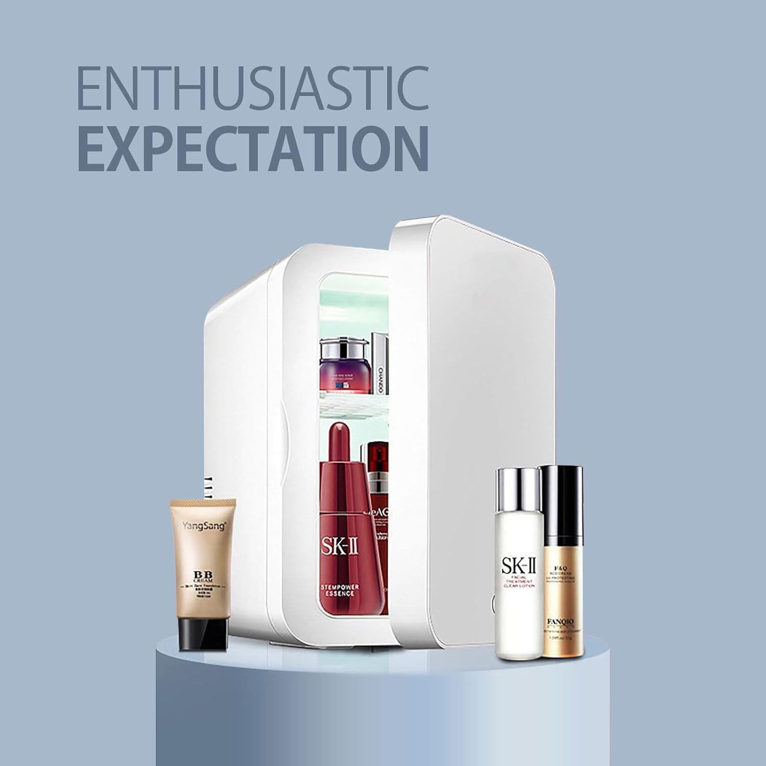 ثلاجة تجميل سعة 6 لتر: سعة 6 لتر مقاس 19.5 × 26 × 28 سم وتزن 5 باوند. الرف القابل للإزالة يجعل الأشياء الصغيرة مثل العناية بالبشرة ومستحضرات التجميل سهلة الفصل، أفضل هدية للنساء والفتيات.