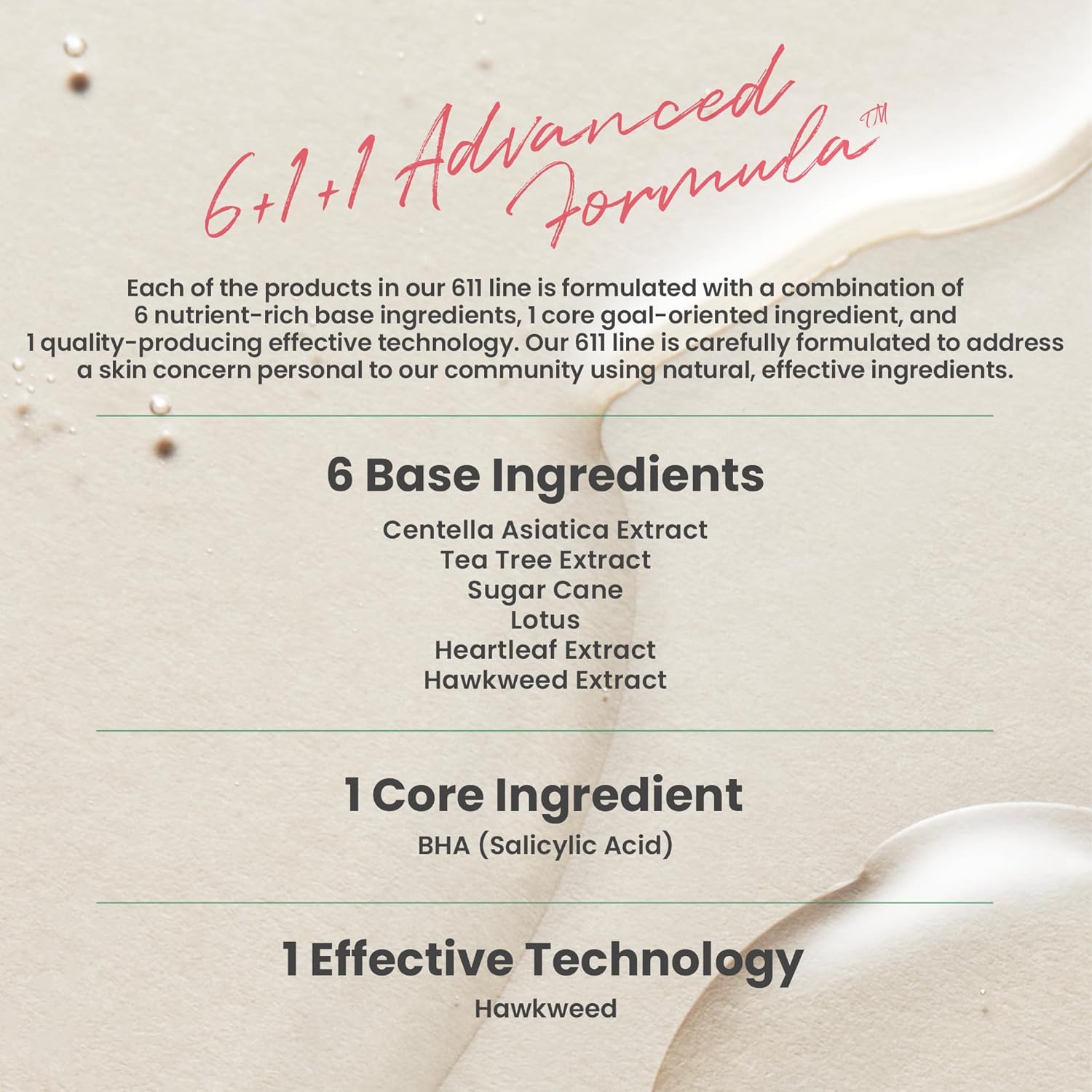 يحتوي هذا التونر على تركيبة فريدة تحتوي على ستة مكونات طبيعية فاخرة إلى جانب حمض الساليسيليك وتقنية البشرة المفيدة الخاصة بنا.