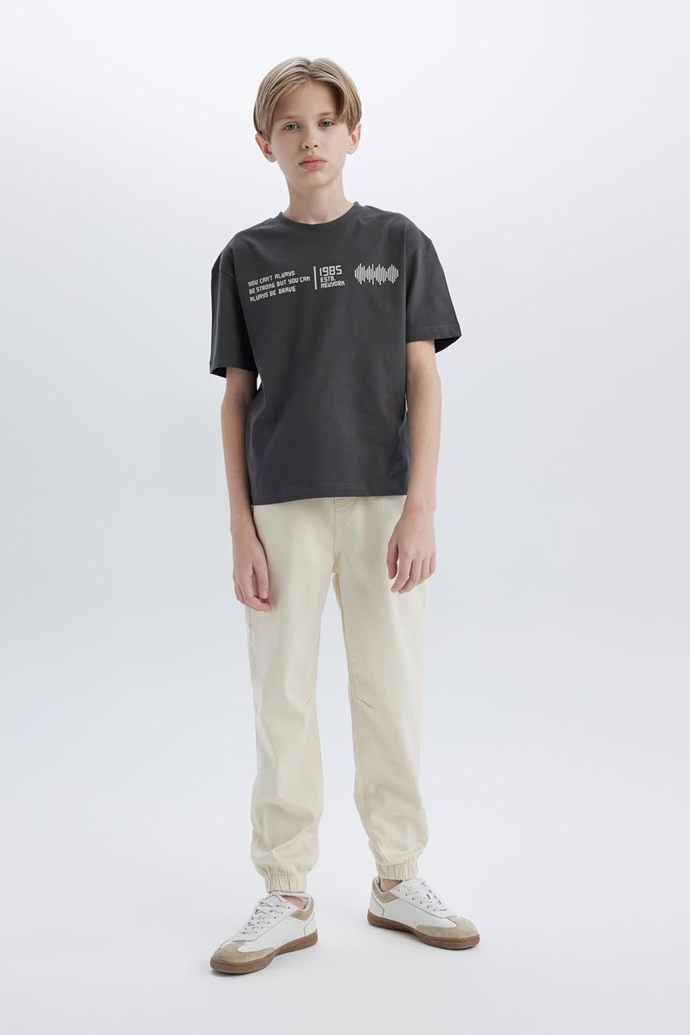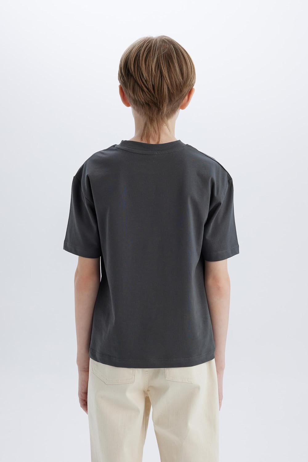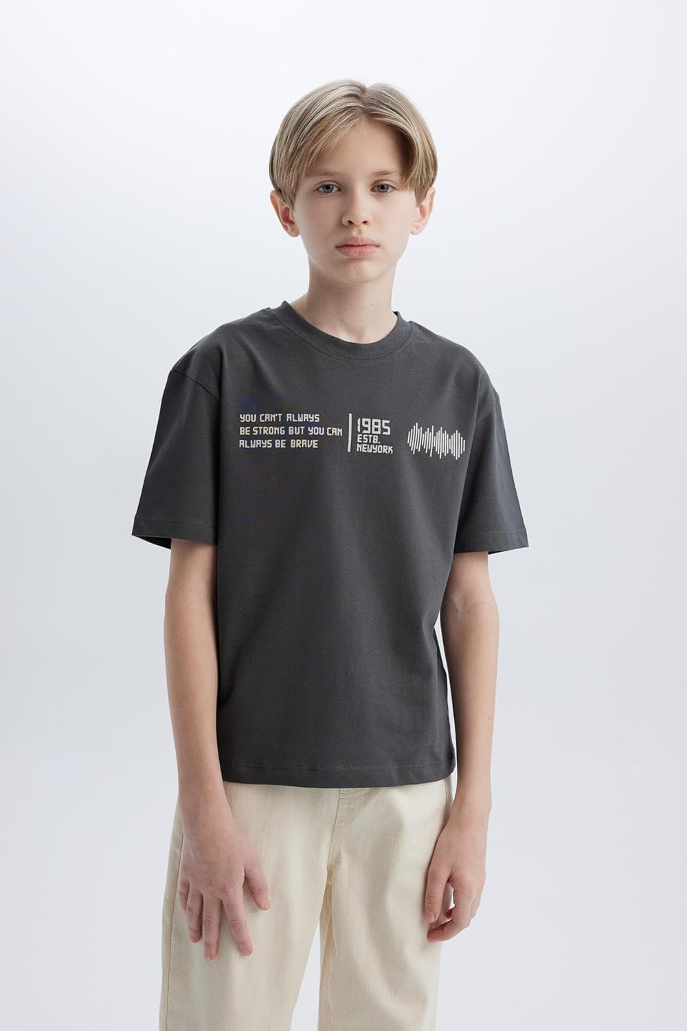 ديفاكتو تيشيرت كاجوال محبوك بأكمام قصيرة ورقبة دائرية ضيقة وقصة كبيرة للأولاد B6165A8