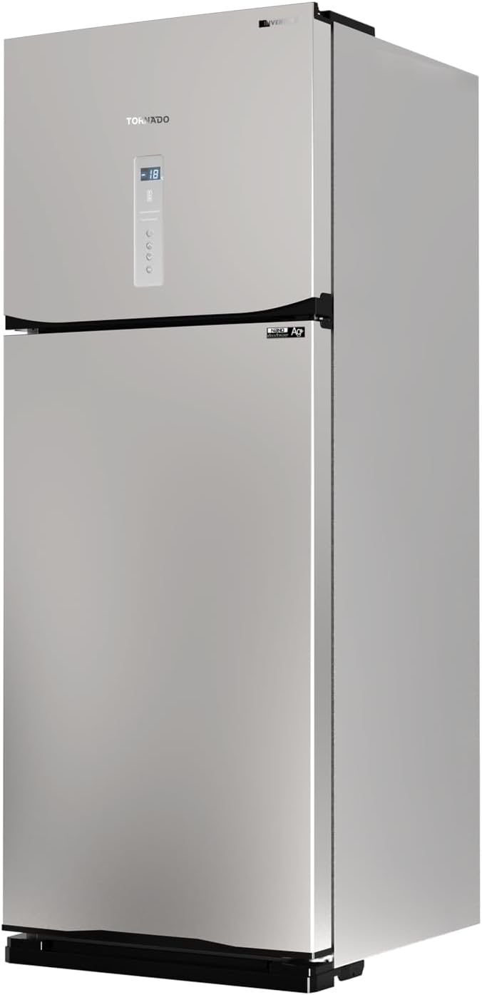 ثلاجة ديجيتال بخاصية إذابة الثلج (نو فروست) انفرتر من تورنيدو، سعة 450 لتر، فضية، موديل RF-580ATV-SL