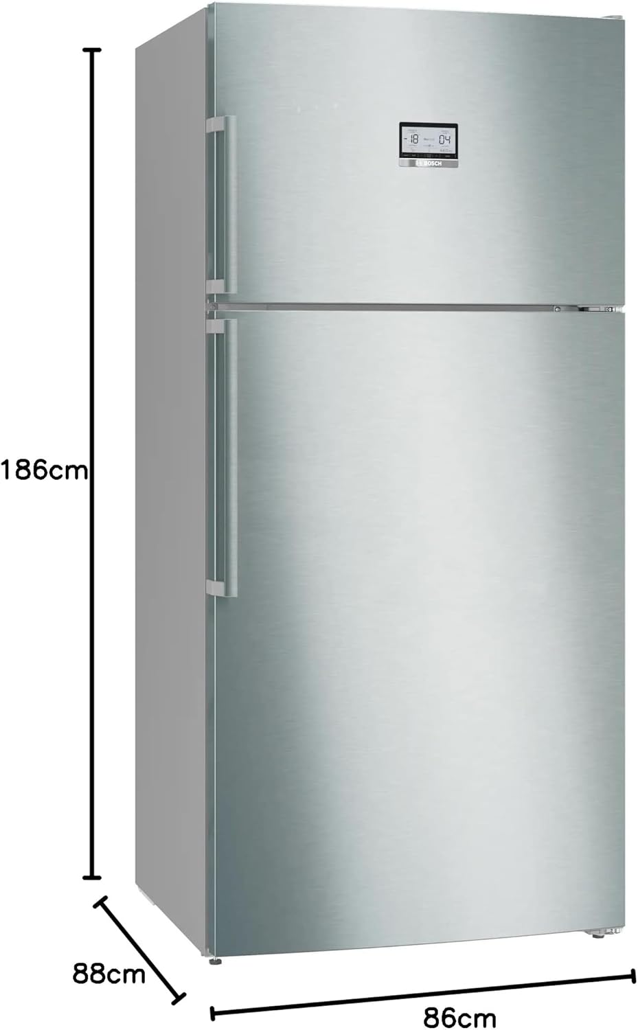 ثلاجة مع فريزر علوي من سلسلة 6 اينوكس ايزي كلين من بوش، 186×86 سم، موديل KDN86AI3E9