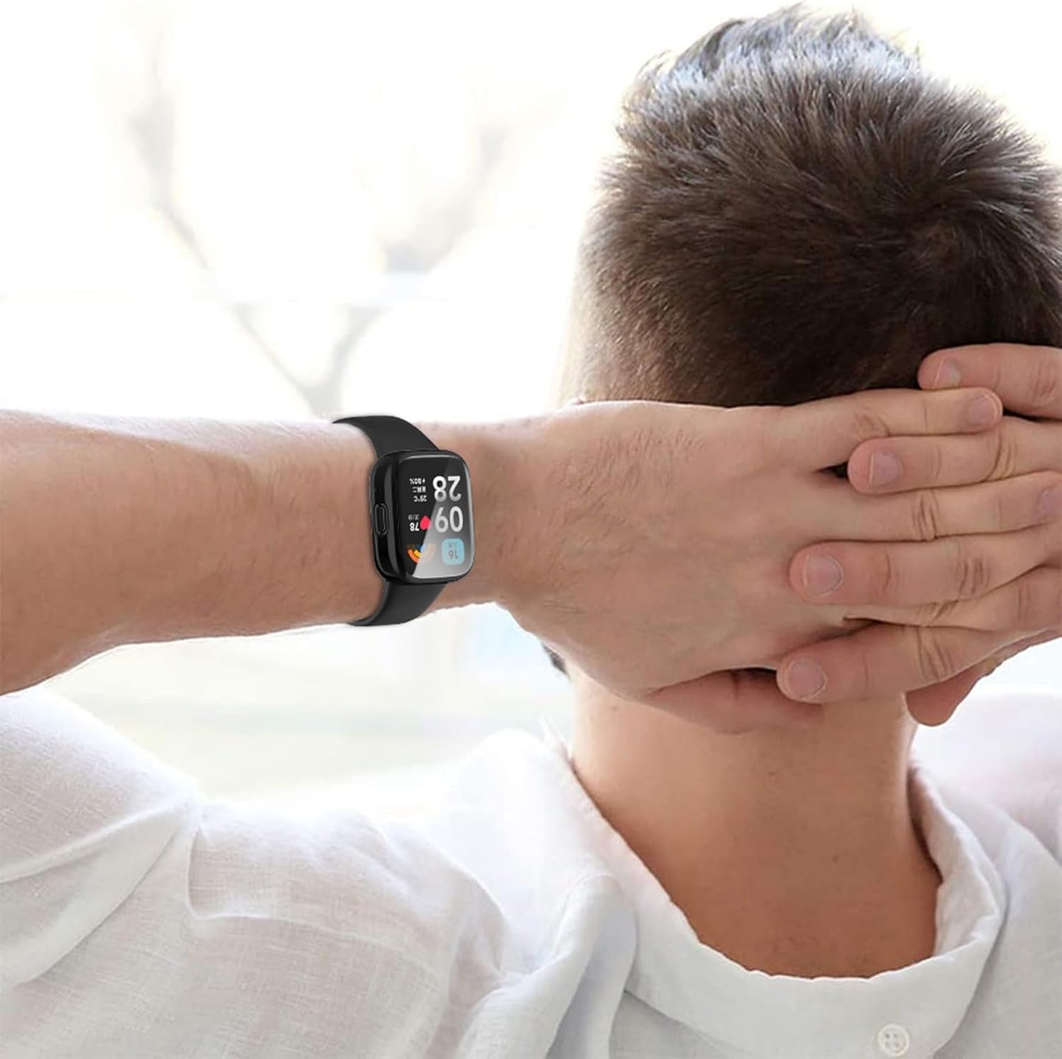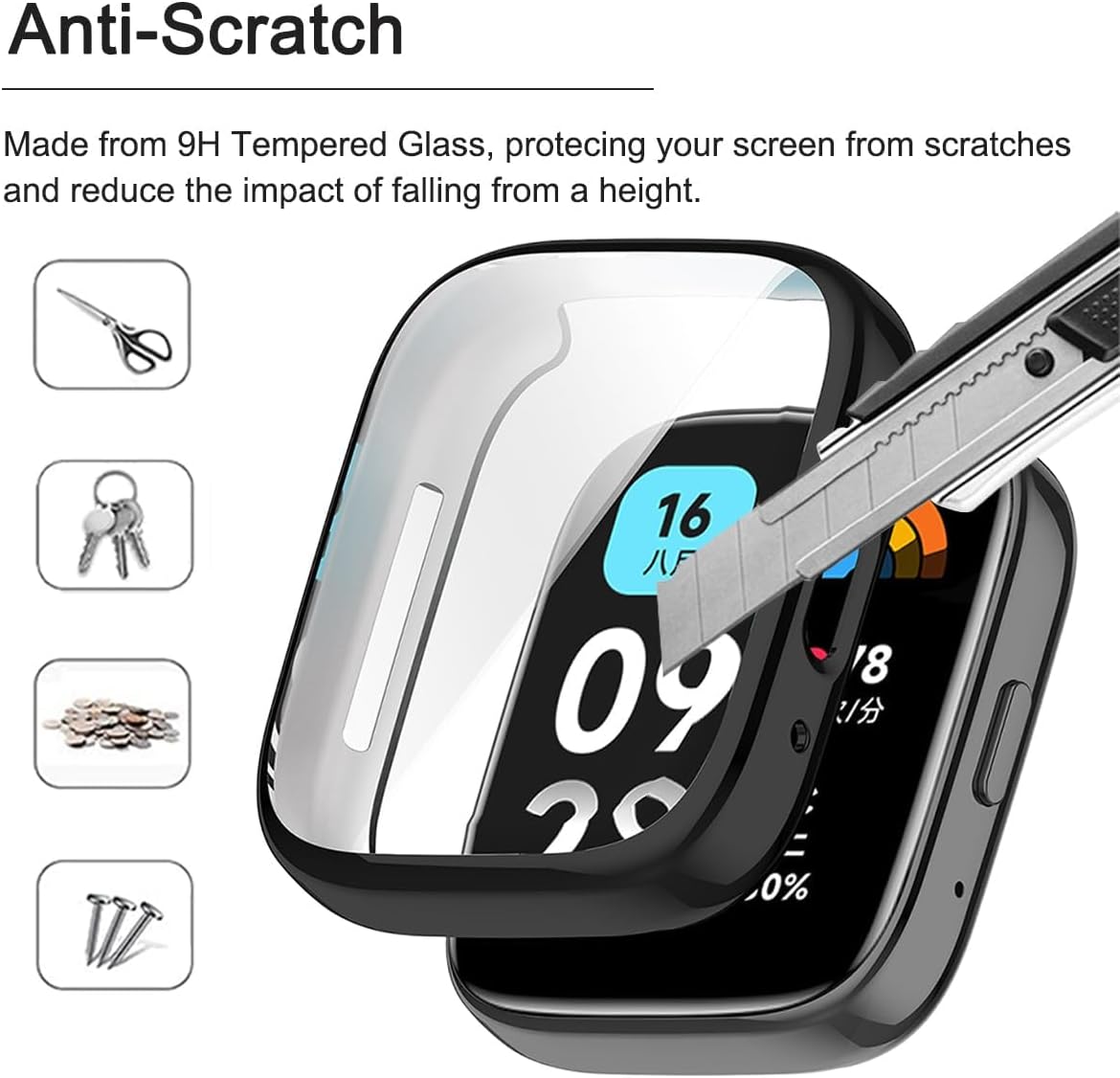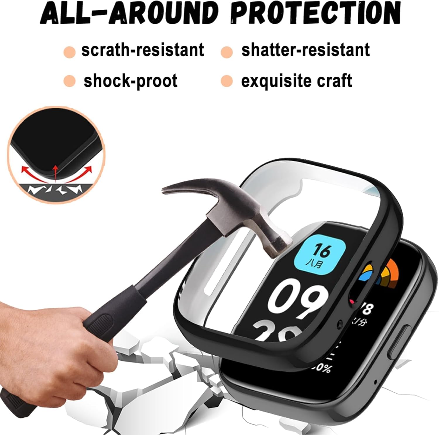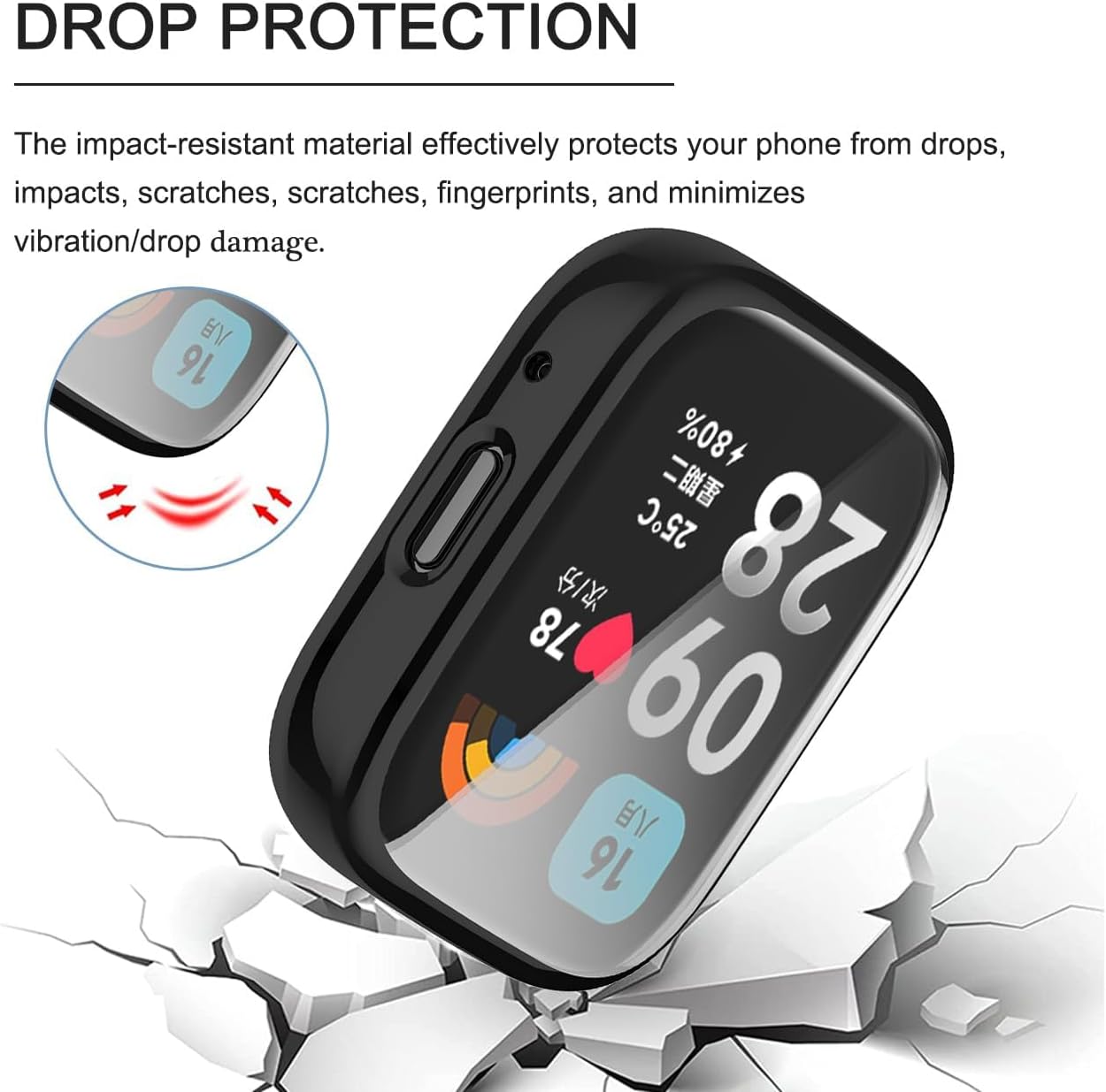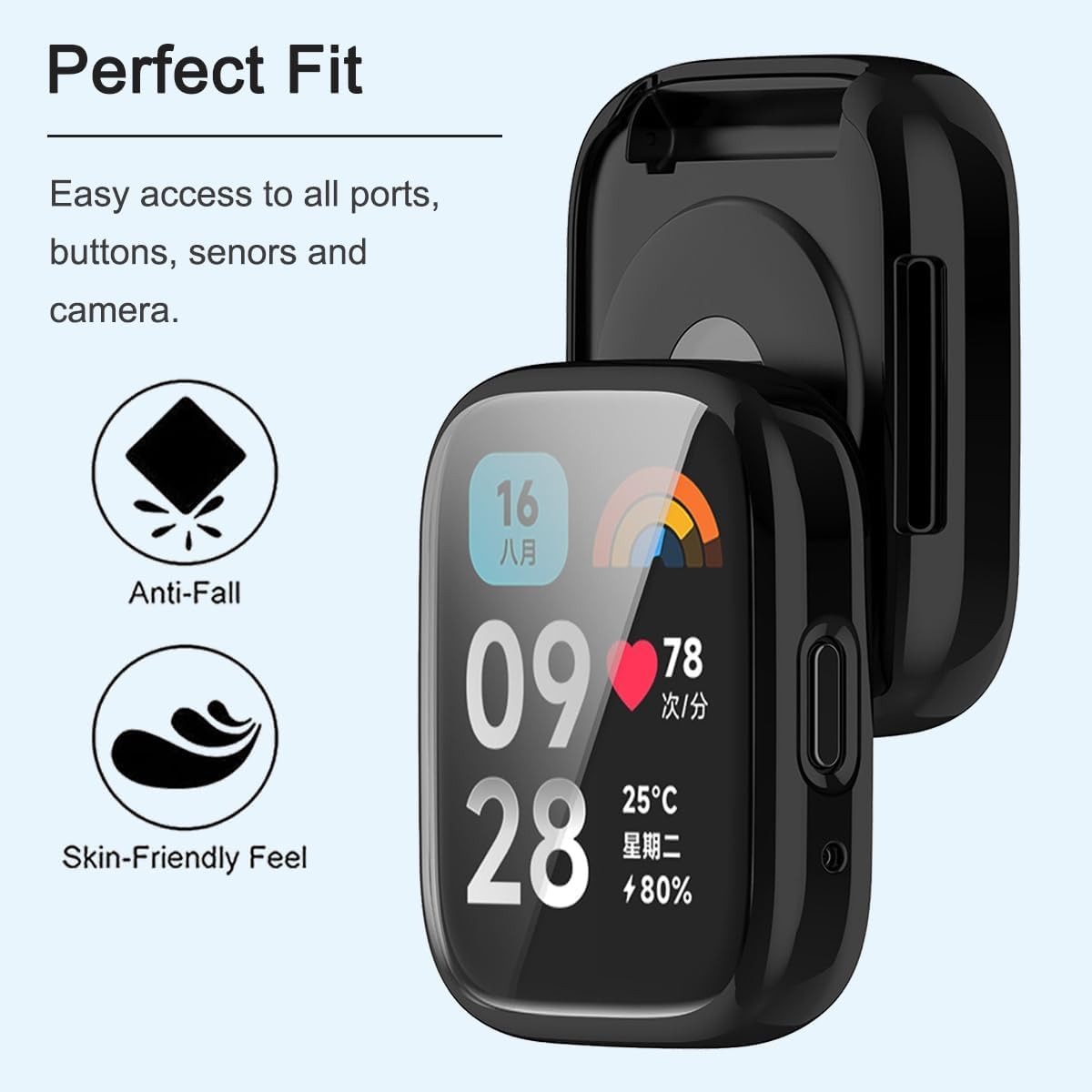 دلـع موبايلك جراب لساعة شاومي ريدمي ووتش 3 لايت/ ريدمي ووتش 3 اكتيف، جراب شامل مع شاشة حماية مدمجة، جراب ناعم من البولي يوريثين الحراري المقاوم للصدمات، واقي رفيع ممتص للصدمات (اسود)
