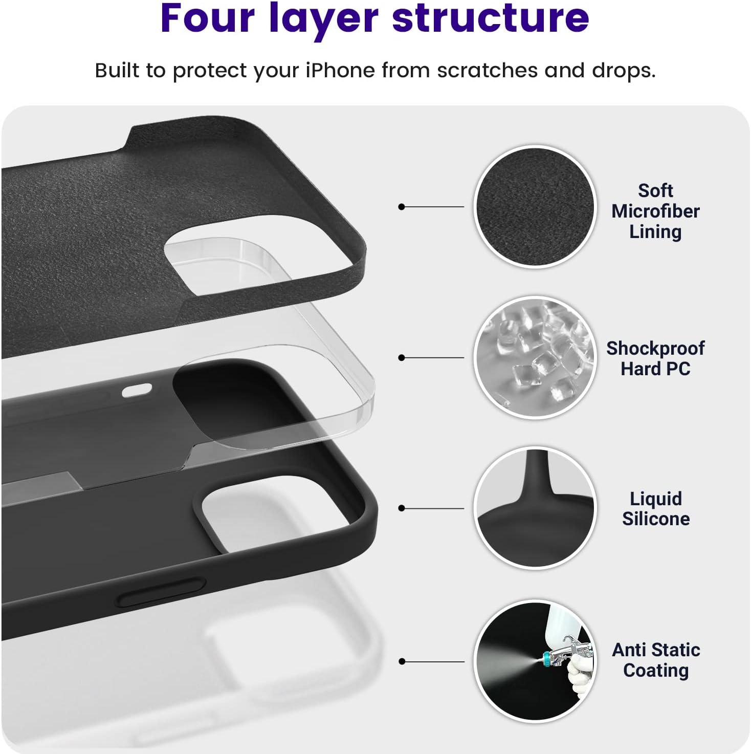 حماية من الدرجة العسكرية ومضاد للصدمات – جراب موبايل ايفون 13 البسيط والمرن مصنوع من جل السيليكون السائل عالي الجودة، وتتميز هذه المادة بأنها آمنة وصديقة للبيئة وفائقة النعومة ومتينة ومقاومة للإصفرار مع مرور الوقت. يضمن التصميم ممتص الصدمات للسيليكون المحسن حماية جهاز ايفون 13 من العيوب والأضرار.