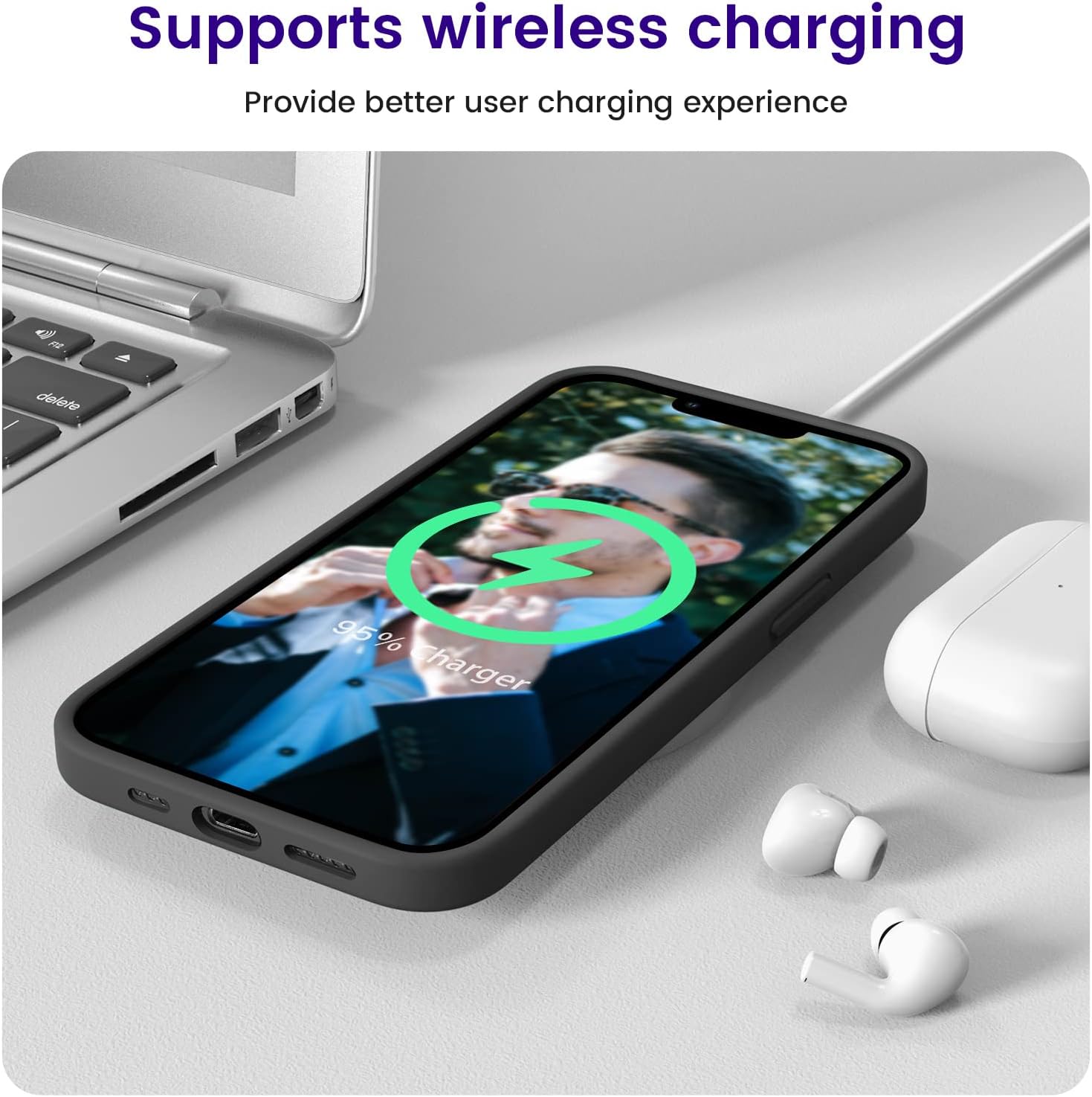 الجراب الخاص بنا متوافق مع ايفون 13 – يناسب تمامًا ايفون 13 مع فتحات دقيقة لجميع الأزرار والمنافذ. لا يترك أثر بصمات الأصابع، وهو مضاد للصدمات ومقاوم للخدش، ويدعم الشحن اللاسلكي.