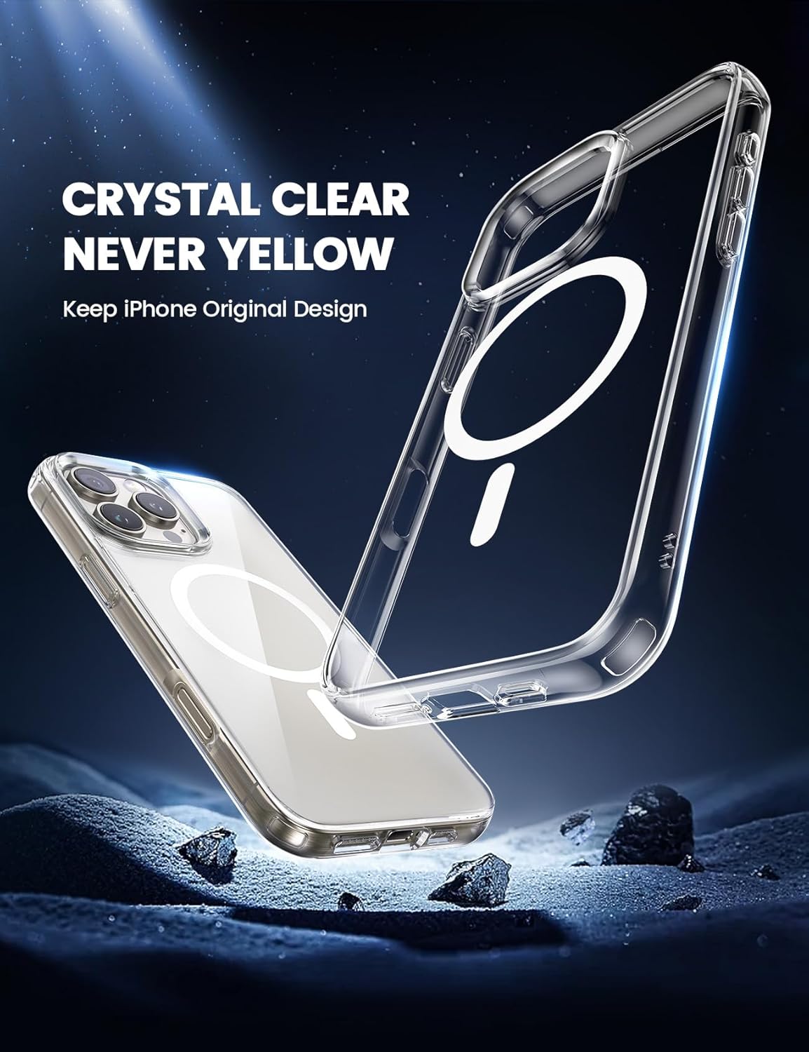 لاميكال جراب حماية ماج سيف لموبايل ايفون 16 برو ماكس [شفاف ومضاد للاصفرار] [حماية من السقوط من الدرجة العسكرية] مقاوم للخدش، حماية للشاشة والعدسات، مغناطيس أقوى، فقط لجراب ايفون 16 برو ماكس