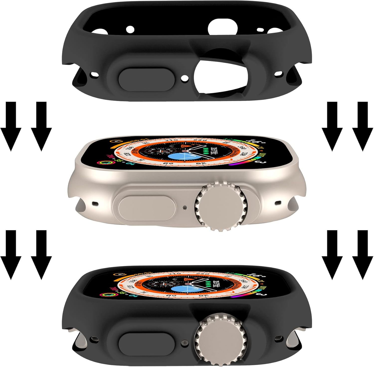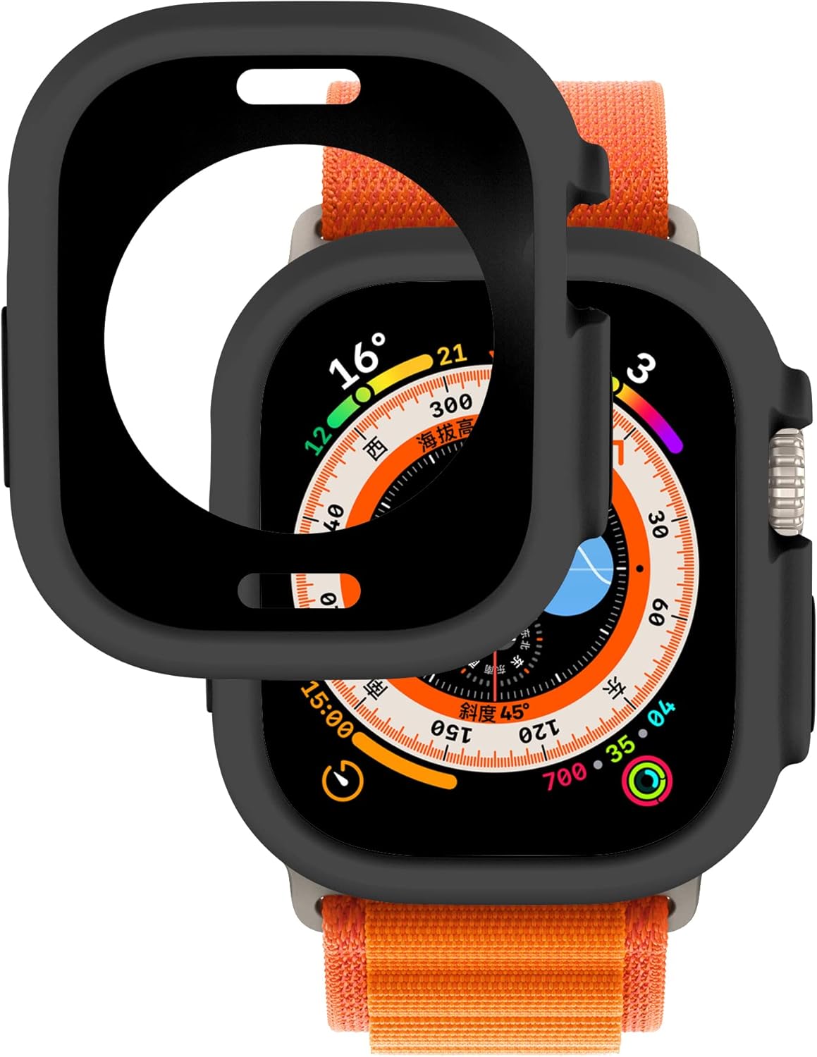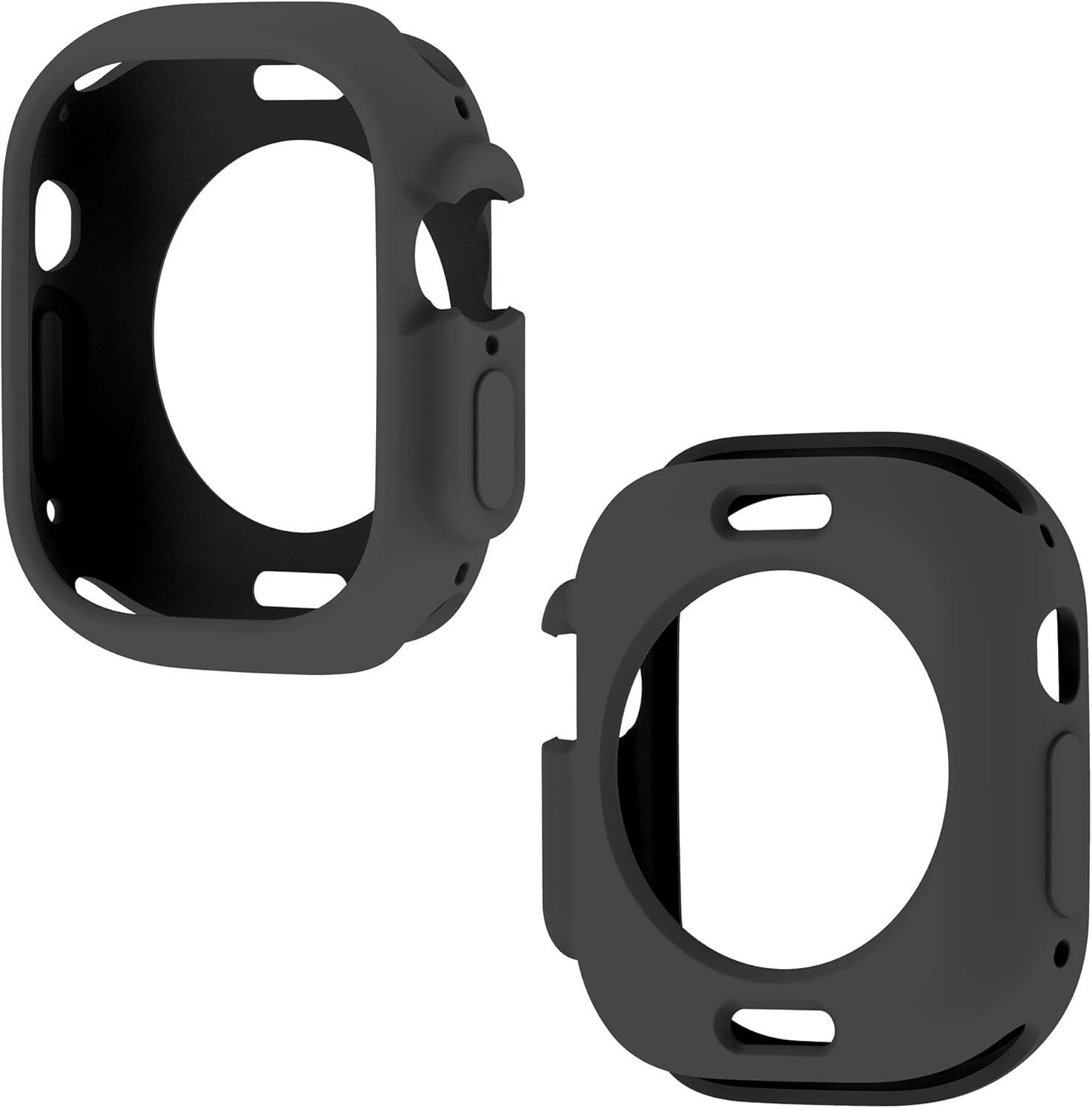 جراب حماية متوافق مع ساعة ابل الترا 49 ملم، جراب حماية من السيليكون والبولي يوريثين المقاوم للحرارة ممتص للصدمات ومقاوم للخدش لساعة ابل الترا 49 ملم (اسود)