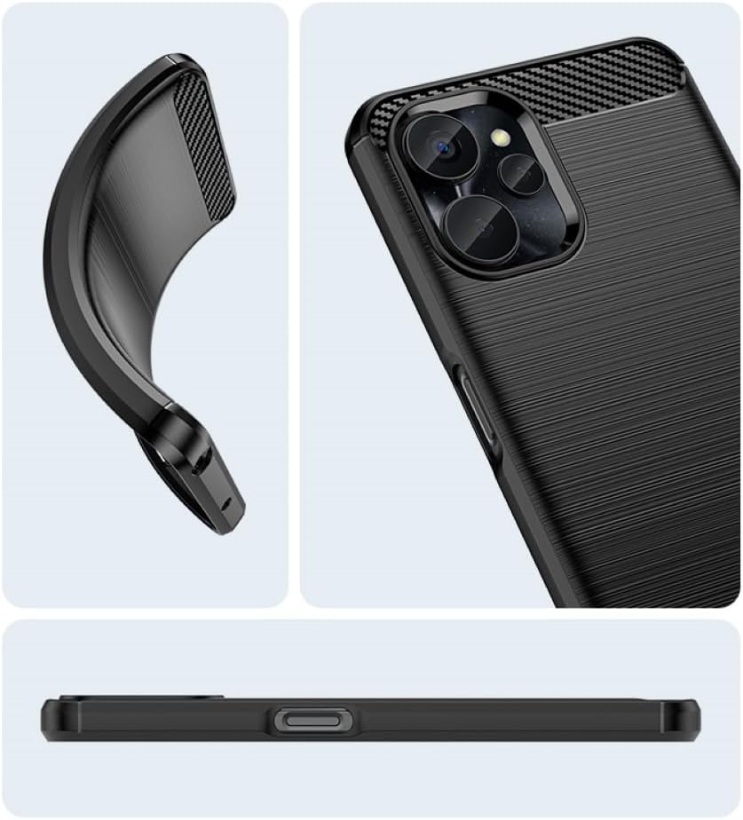 جراب متوافق مع ريلمى 10T 5G ، – غطاء حماية مصقول مقاوم للصدمات رفيع للغاية متين من ألياف الكربون المصقولة – غطاء واقي مضاد للخدش و مقاوم للانزلاق – أسود