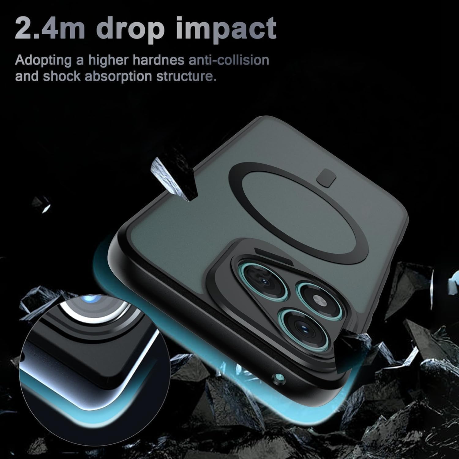 حماية من الدرجة العسكرية: تتميز بتقنية ممتص الصدمات التي اجتازت بنجاح أكثر من 4500 اختبار سقوط من ارتفاع 10 أقدام مع معدل تلف الهاتف 0%