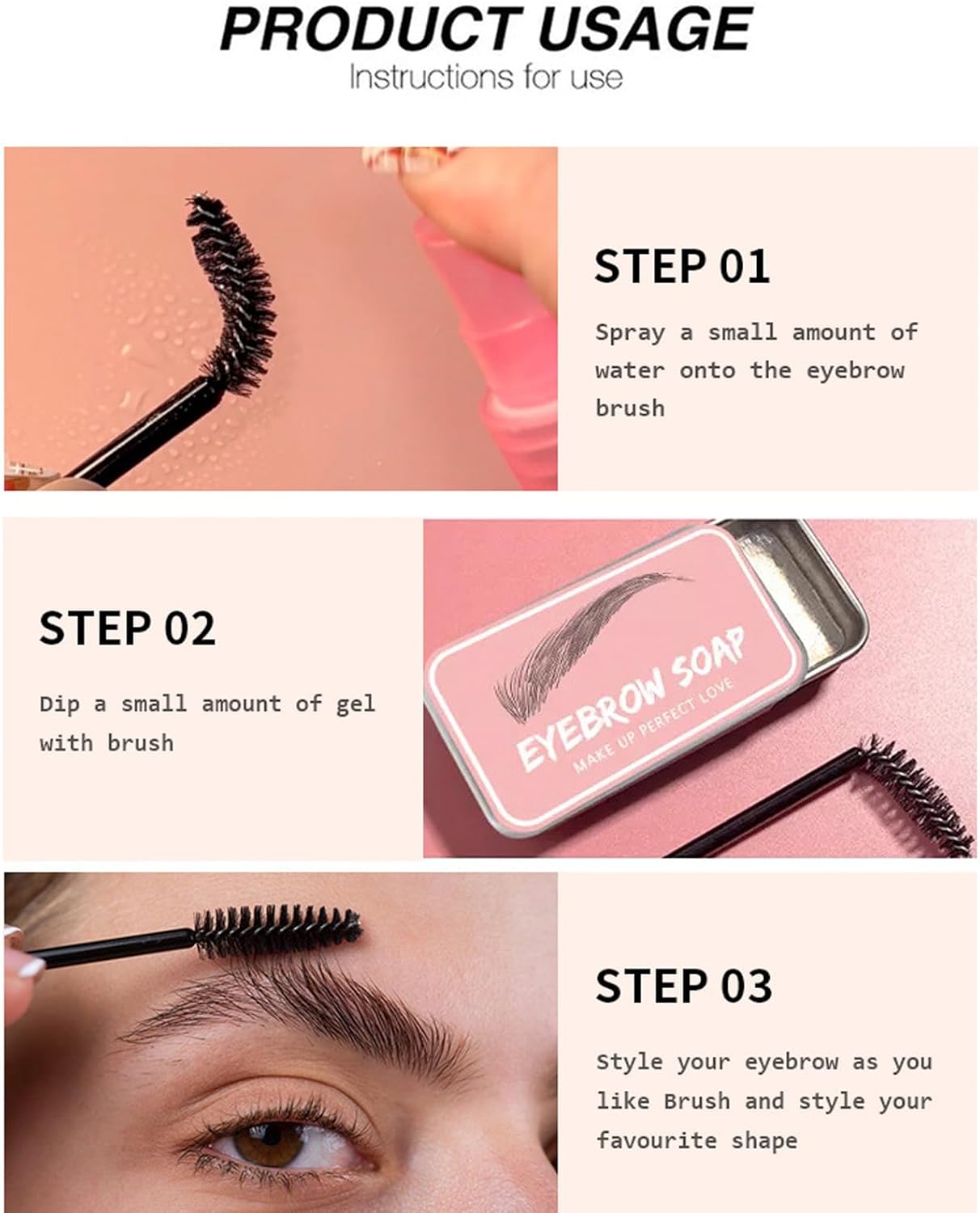 سهلة الاستخدام: رشي رأس الفرشاة مبللًا، ثم مشطي صابون الحواجب برأس الفرشاة المبلل قليلاً وقم بتمشيط حاجبيك بشكل متكرر لأعلى حتى يلتصق كل شعر حاجب بصابون التشكيل للحصول على تأثير تشكيل.