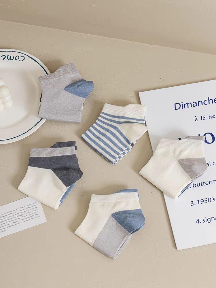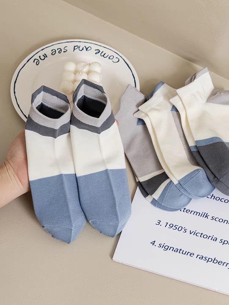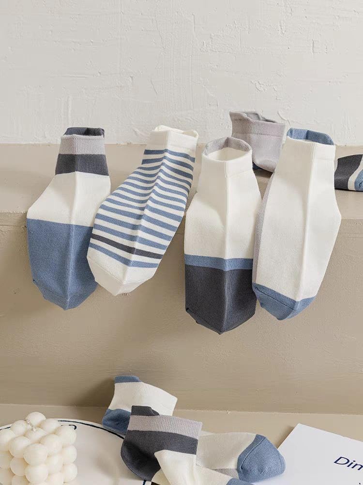 اكتشف الراحة والأناقة مع مجموعة جوارب الكاحل الرائعة هذه. تأتي المجموعة مع خمسة أزواج بألوان متناسقة تجمع بين الأبيض والأزرق والرمادي، مع تصميمات مختلفة تشمل الخطوط الأنيقة والألوان المتباينة. مصنوعة من مزيج القطن المريح الذي يضمن التهوية المثالية والمتانة طوال اليوم. تتميز هذه الجوارب بتصميم عصري وحافة مريحة لا تضغط على الكاحل، مما يجعلها مثالية للارتداء اليومي مع الأحذية الرياضية أو الرسمية. المقاس موحد ومناسب لمعظم المقاسات القياسية للرجال. تجمع هذه المجموعة بين البساطة والأناقة مع لمسات من الألوان المتناسقة التي تضيف أناقة لمظهرك اليومي. مثالية للاستخدام في العمل أو المناسبات غير الرسمية، وتوفر خيارات متنوعة لتنسيق ملابسك.