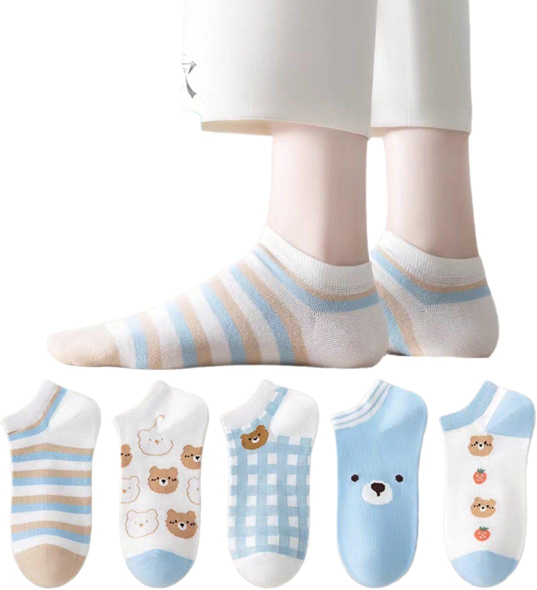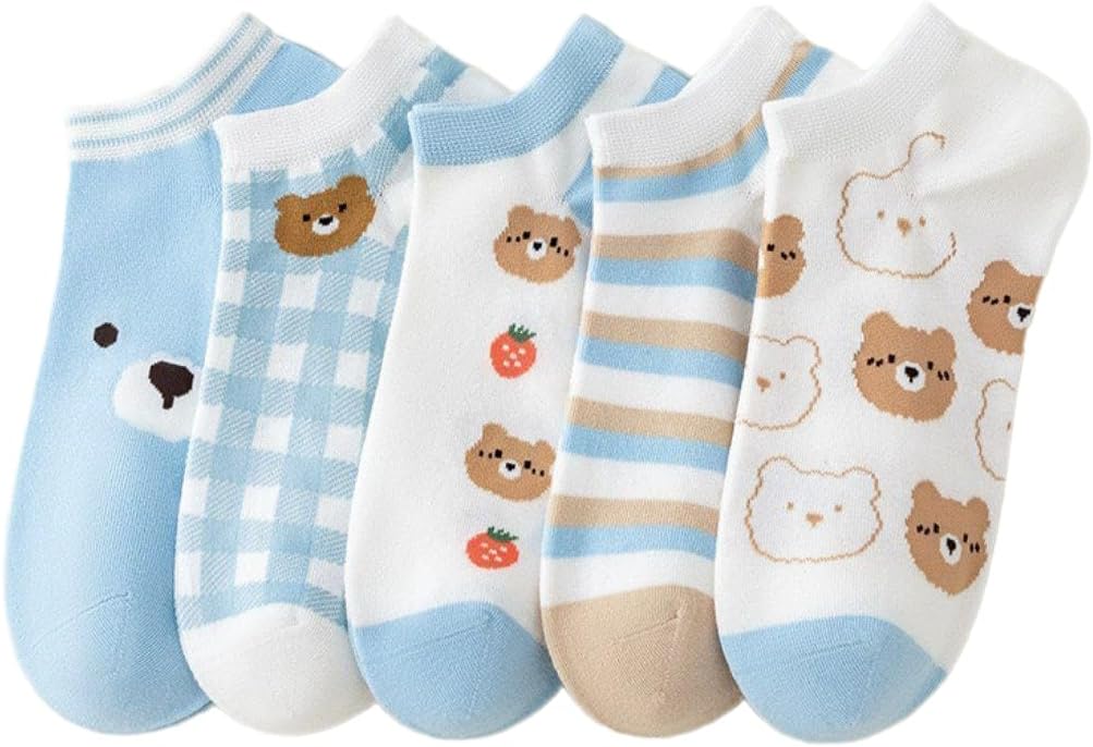 جوارب نسائية قصيرة، تصميم دب وفراولة، جوارب صيفية قصيرة للكاحل، 5 أزواج مع واحد هدية متعددة الألوان