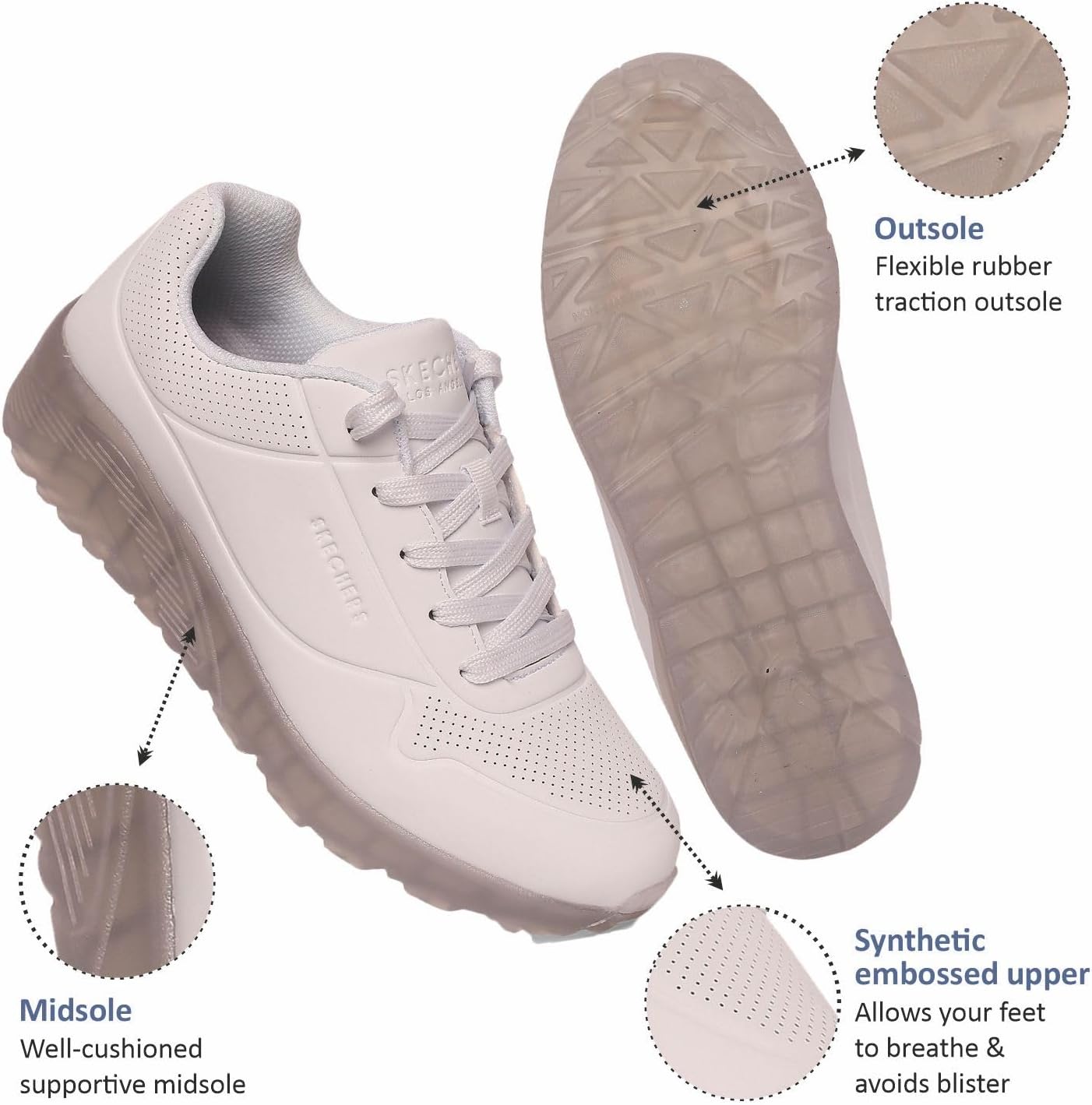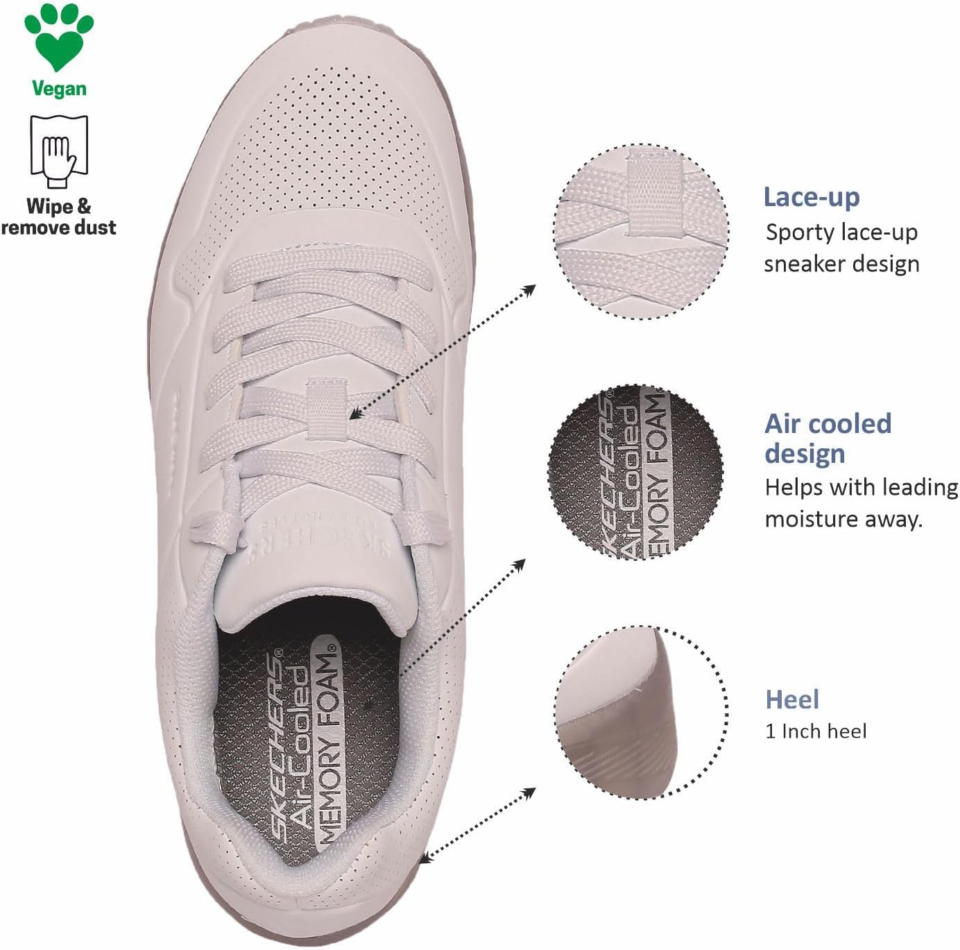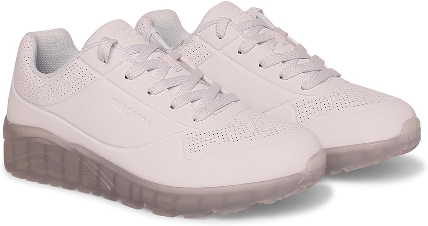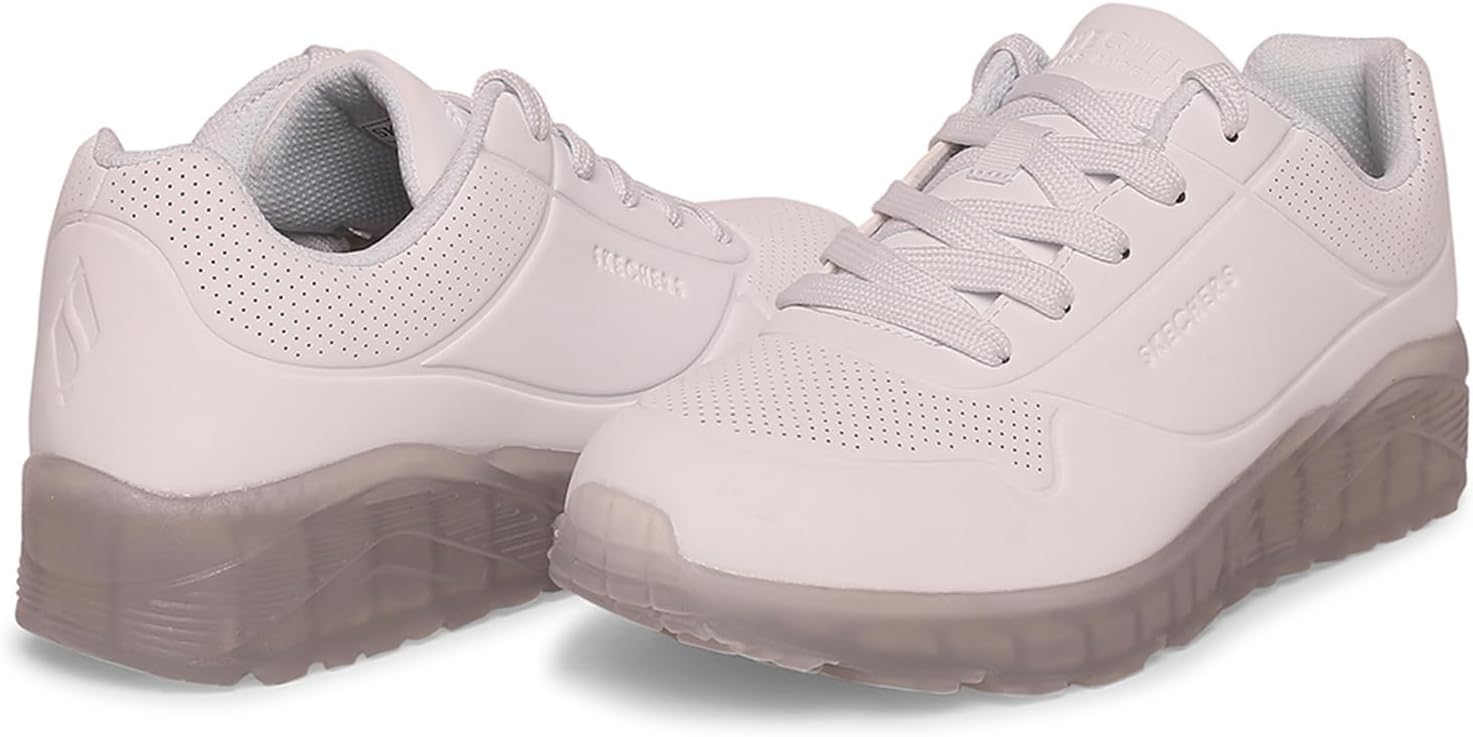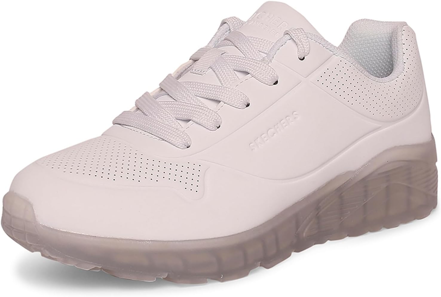 تميز بأناقة وراحة عند ارتداء سكيتشرز Boys Uno Ice. يتميز هذا الحذاء الأنيق برباط علوي مزخرف صناعي قزحي الألوان مع نعل داخلي سكيتشرز Air-Cooled Memory Foam® ونعل أوسط مبطن بكعب إسفيني.