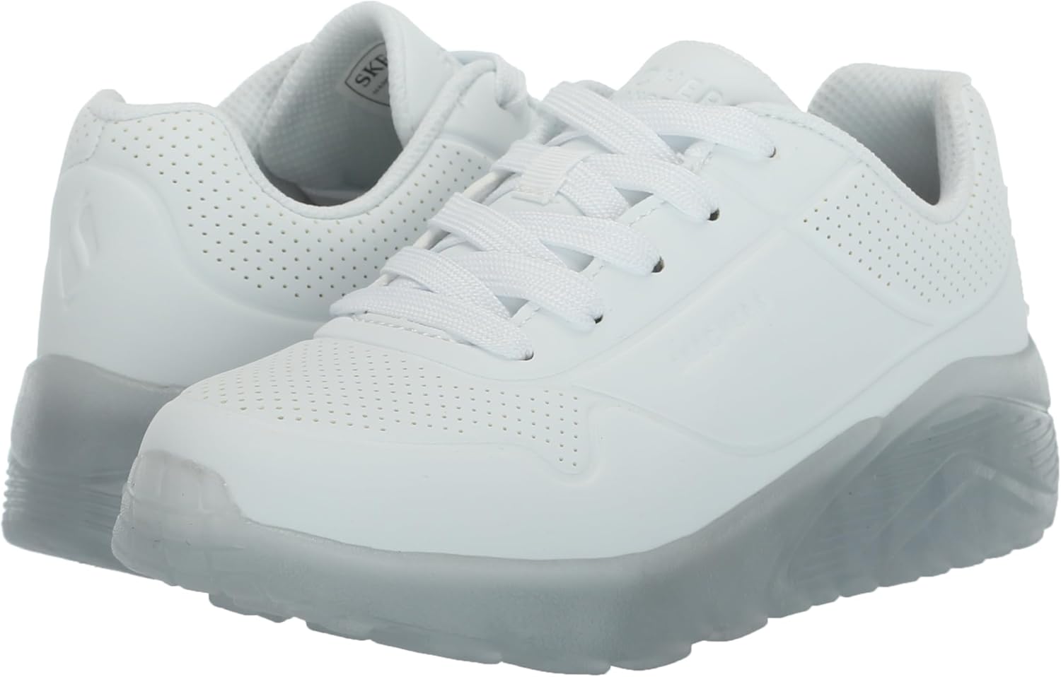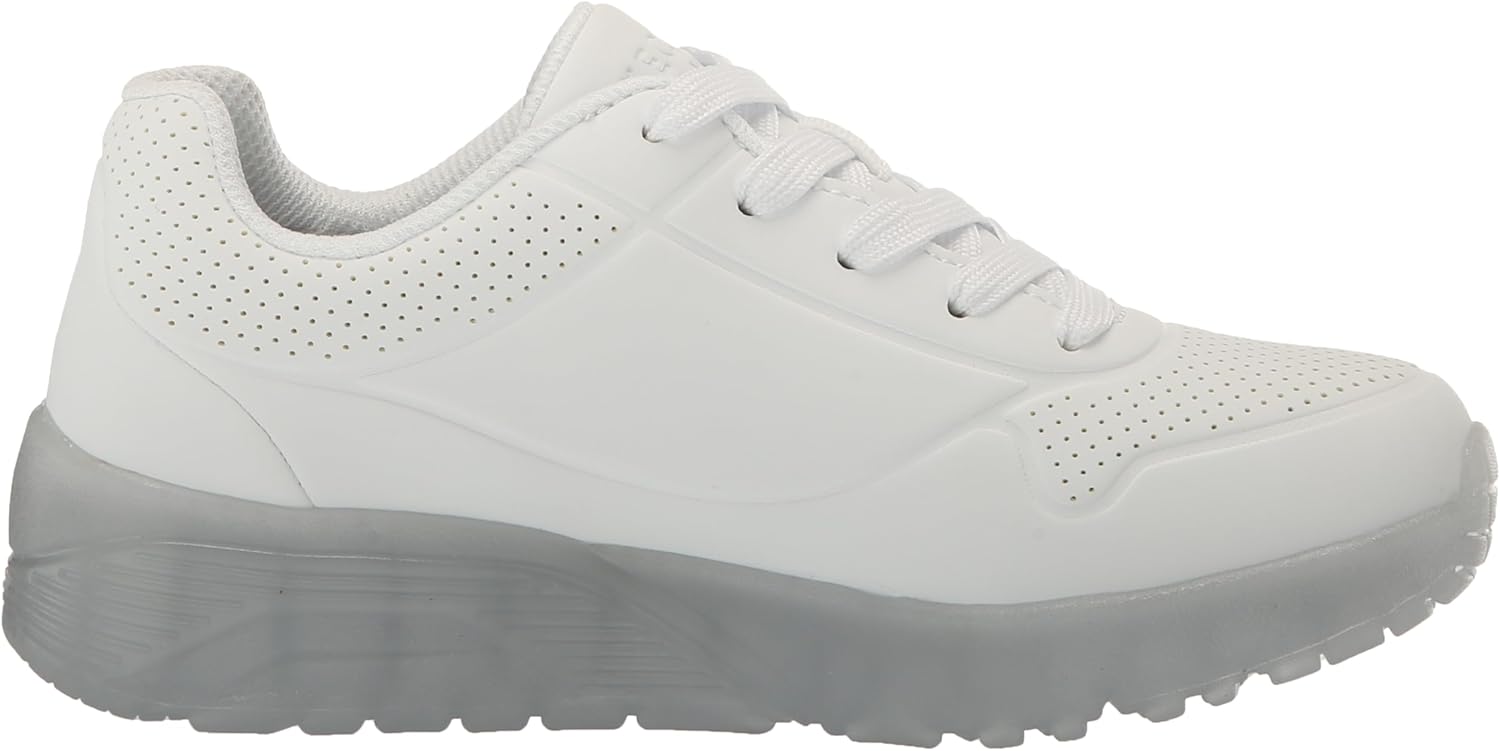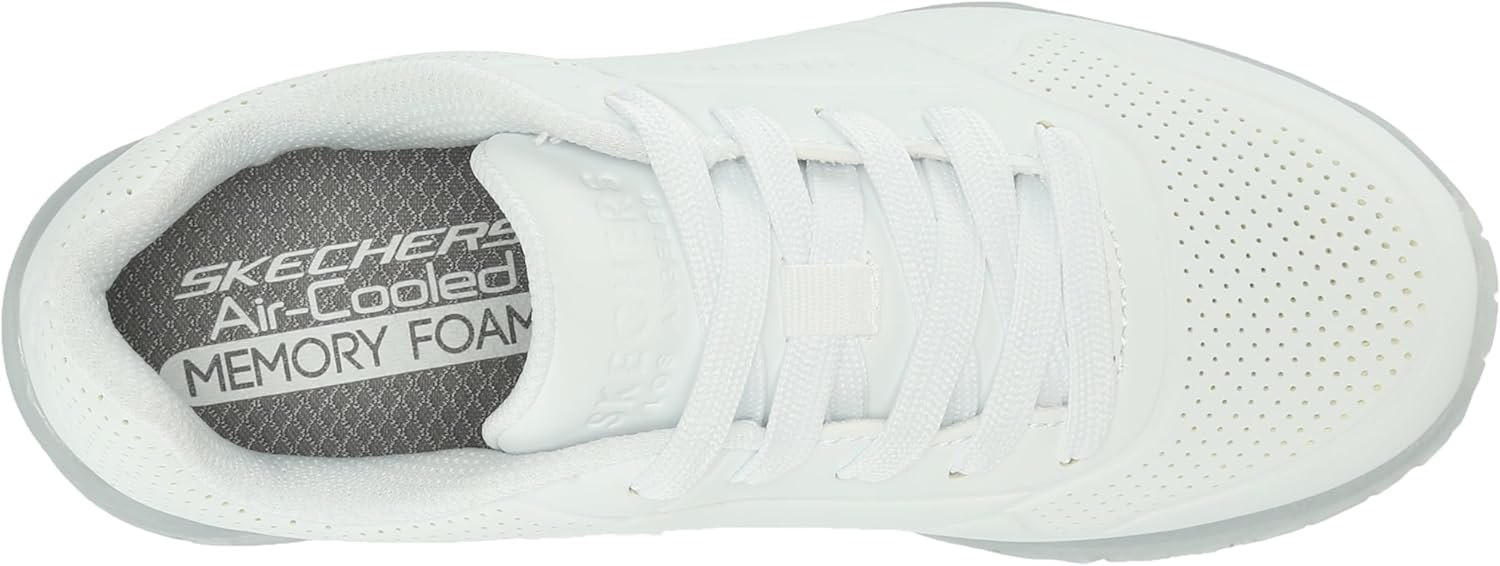 تميز بأسلوب رياضي وراحة عند ارتداء سكيتشرز Street Uno Ice. يتميز هذا الحذاء الأنيق برباط علوي صناعي منقوش مع نعل داخلي سكيتشرز Air-Cooled Memory Foam ونعل أوسط مبطن شفاف.