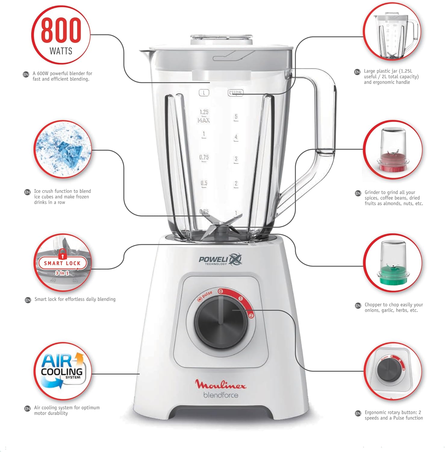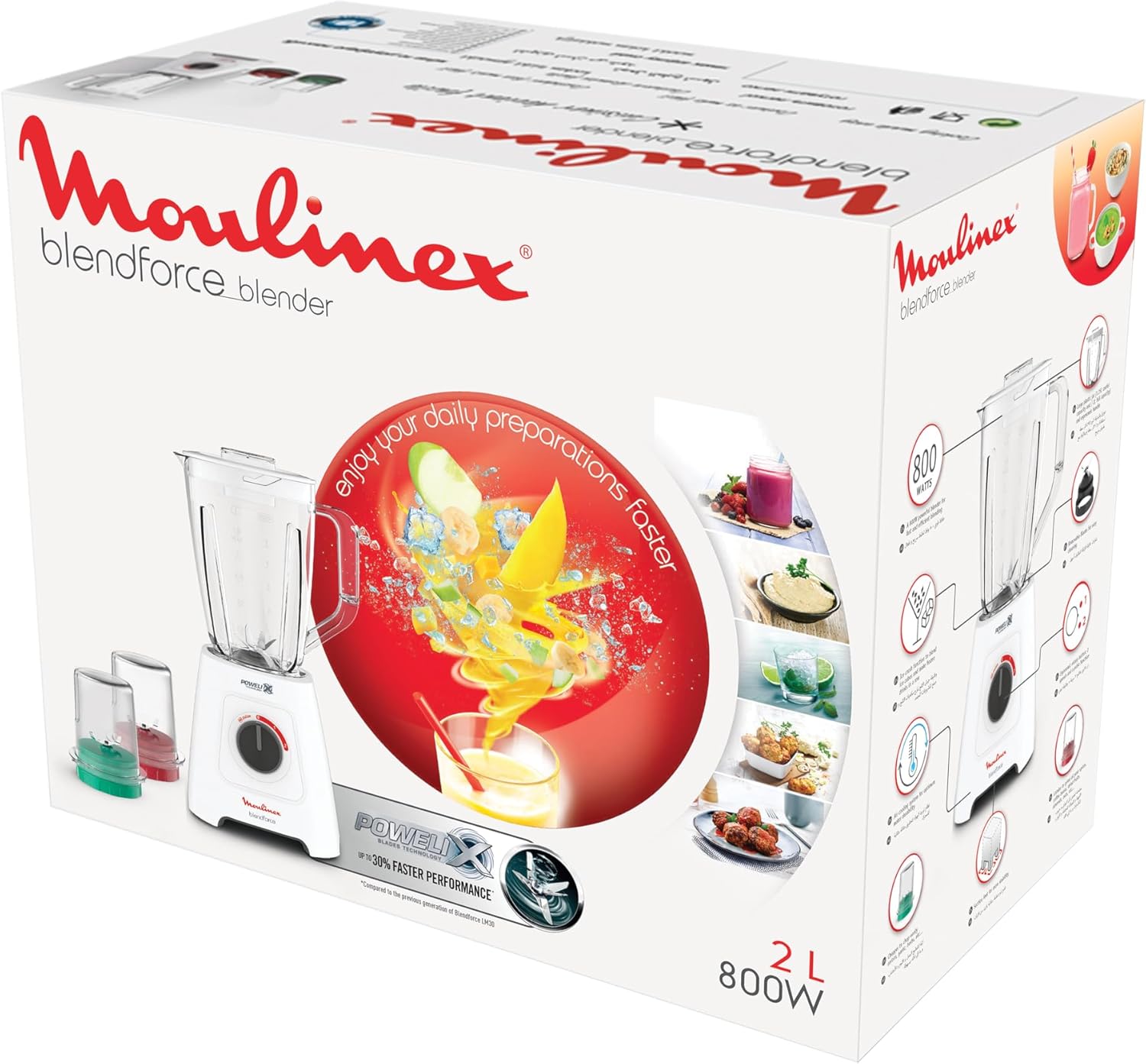 شراء خلاط بليند فورس من مولينكس، بقوة 800 وات وسعة 2 لتر ومزود بمطحنة ومفرمة، بلون أبيض، موديل LM4231EG.، 800.0 واط اون لاين من امازون او نون خلاط بليند فورس من مولينكس، بقوة 800 وات وسعة 2 لتر ومزود بمطحنة ومفرمة، بلون أبيض، موديل LM4231EG.، 800.0 واط