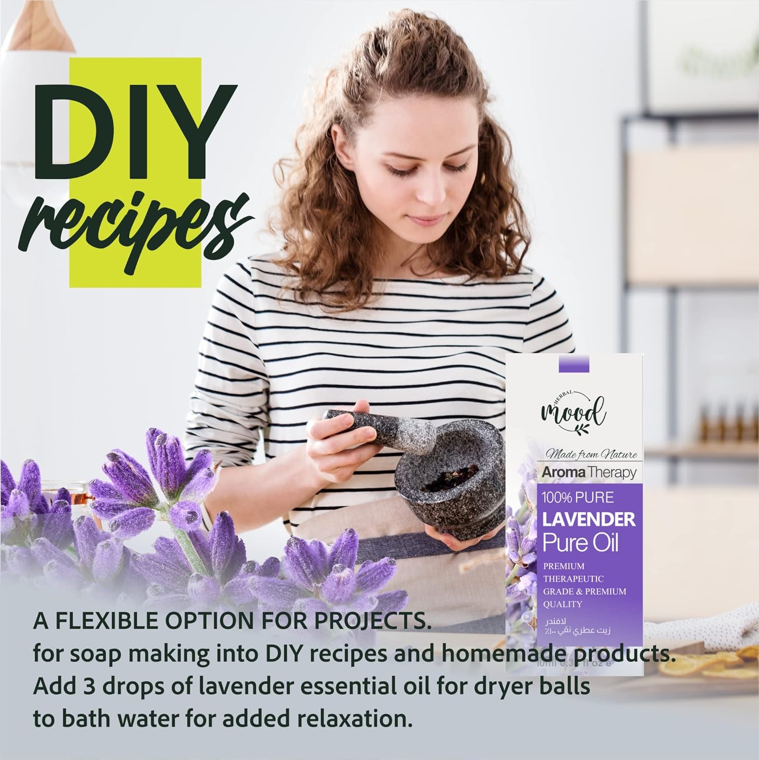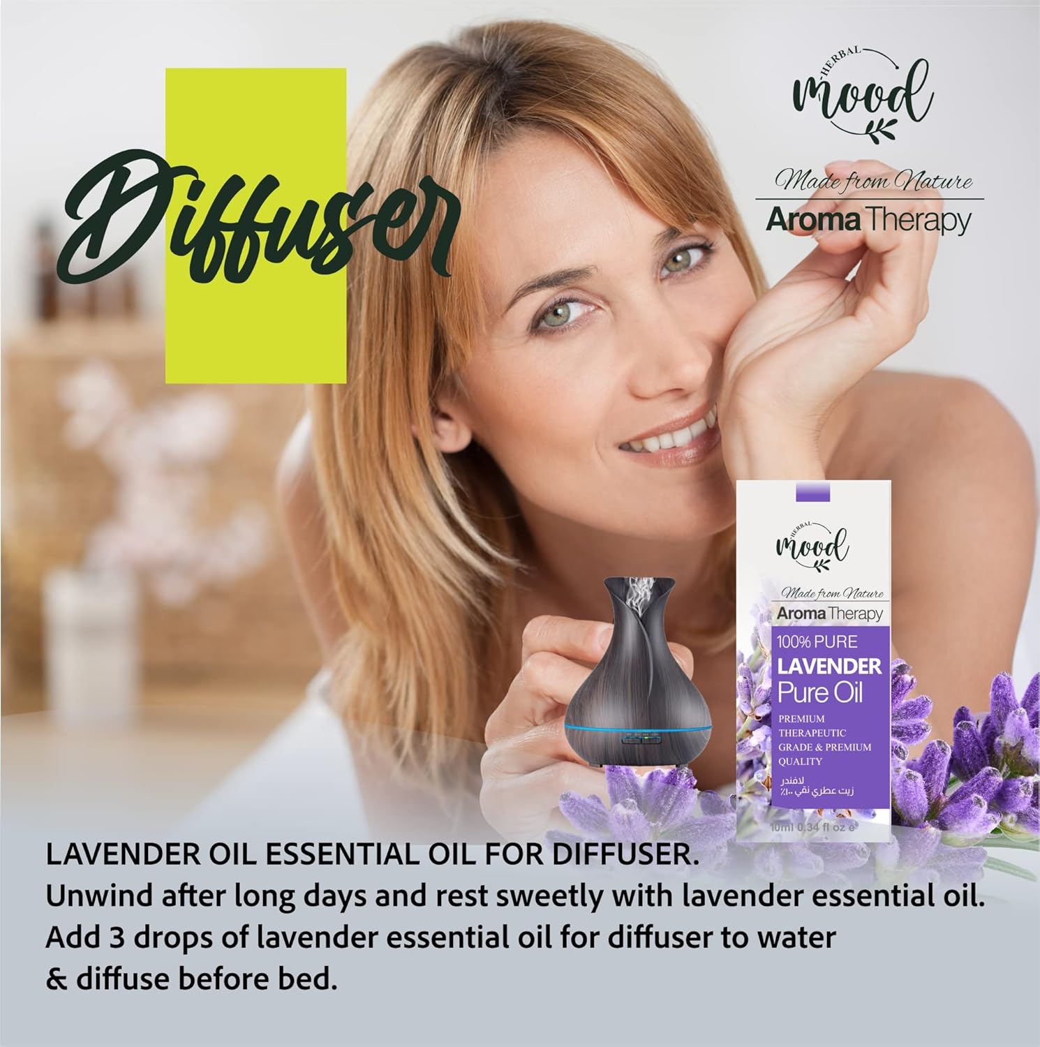 زيت اللافندر العطري هو واحد من أكثر الزيوت العطرية شعبية وتعدد الاستخدامات المستخدمة في العلاج بالروائح العلاجية. الزيت يعزز الاسترخاء ويعتقد أنه يعالج القلق والاكتئاب والأرق والالتهابات الفطرية والحساسية والأرق والإكزيما والغثيان وتشنجات الحيض. يُعتقد أن زيت اللافندر له خصائص مطهرة ومضادة للالتهابات والتي يمكن أن تساعد في علاج الحروق البسيطة ولدغات الحشرات. يُستخدم اللافندر للمساعدة في تخفيف الألم الناتج عن الصداع والالتواءات وآلام الأسنان والقروح. كما يمكن استخدامه لمنع تساقط الشعر بمجرد دمجه مع زيت حامل ويمكن تدليك زيت اللافندر العطري على بشرتك أو إضافته إلى حمامك. يمكنك أيضًا رش بضع قطرات من زيت اللافندر العطري على قطعة قماش أو منديل واستنشاق الرائحة، أو إضافة الزيت إلى جهاز بخار للعلاج العطري أو جهاز بخار للعلاج العطري الذي يمتزج جيدًا مع زيوت غيرانيوم – المردقوش – نارولي-روزماري. زيت اللافندر العطري هو واحد من أكثر الزيوت العطرية شعبية وتعدد الاستخدامات المستخدمة في العلاج بالعطور. يعزز الزيت الاسترخاء ويعتقد أنه يعالج القلق والاكتئاب والأرق والالتهابات الفطرية والحساسية والأرق والأكزيما والغثيان وتشنجات الحيض. يُعتقد أن زيت اللافندر له خصائص مطهرة ومضادة للالتهابات والتي يمكن أن تساعد في علاج الحروق البسيطة ولدغات الحشرات. كما يمكن أن تساعد في معالجة مشاكل الجهاز الهضمي مثل القيء والغثيان والغاز المعوية والتورم في البطن. بالإضافة إلى المساعدة في مشاكل الجهاز الهضمي، يُستخدم اللافندر للمساعدة في تخفيف الألم الناتج عن الصداع والتواءات وآلام الأسنان والقروح ويمكن استخدامه أيضًا لمنع تساقط الشعر بمجرد مزجه بزيت حامل، ويمكن تدليك زيت اللافندر العطري في بشرتك أو إضافته إلى حمامك. يمكنك أيضًا رش بضع قطرات من زيت اللافندر العطري على قطعة قماش أو منديل واستنشاق رائحته أو إضافة الزيت إلى موزع الروائح العلاجية أو المبخر.