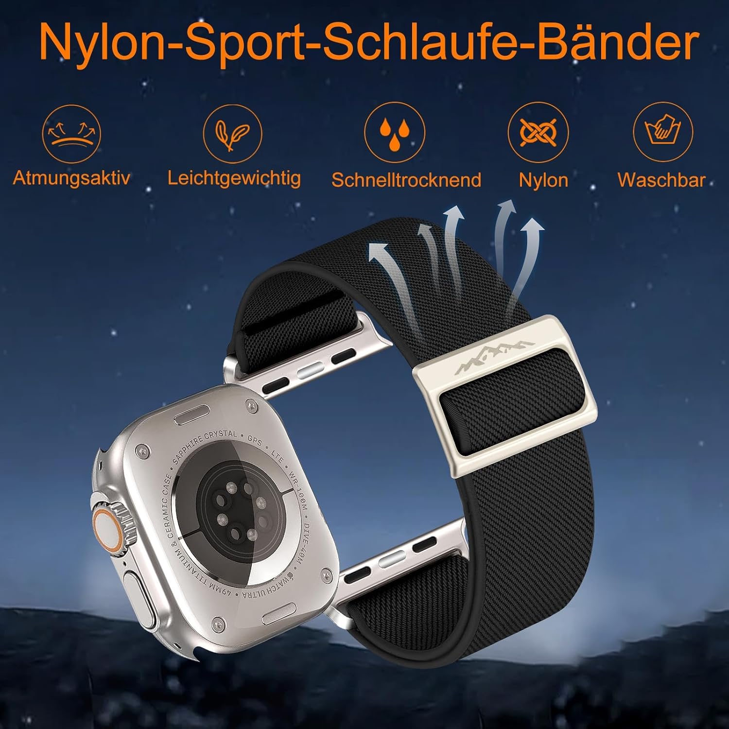 سوار سولو لوب نايلون متوافق مع ساعة آبل الترا 2/الترا 49 ملم 45 ملم 46 ملم 44 ملم 42 ملم للرجال والنساء، سوار رياضي مرن مضفر من القماش الناعم لسلسلة اي ووتش SE 10/9/8/7/6/5/4