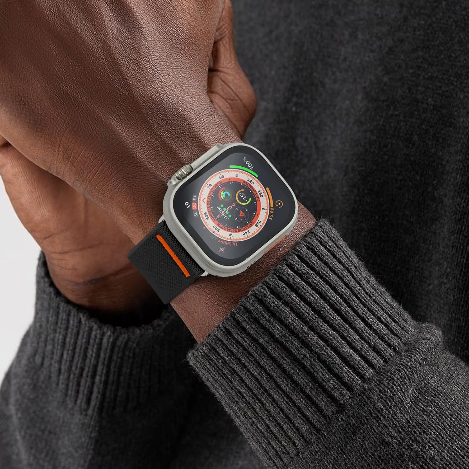مصنوع من مواد عالية الجودة، هذا السوار الفائق مثالي للرجال الذين يريدون خيارًا مريحًا وأنيقًا لساعة آبل الترا الخاصة بهم. مع تصميم مقاوم للماء، هذا السوار مثالي للأنشطة الخارجية والرياضة.