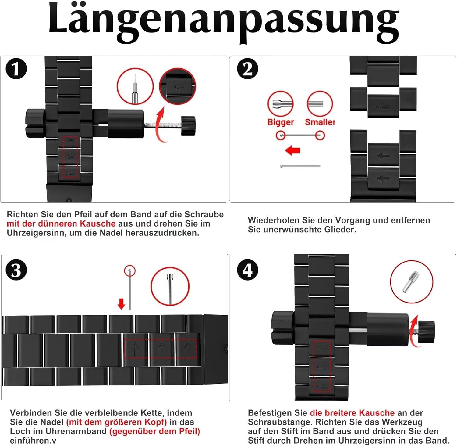 – يحتوي السوار المصنوع من الفولاذ المقاوم للصدأ على 6 أجزاء قابلة للإزالة، وتأتي العبوة مع أداة إزالة وتعليمات (توفر اللغة الإنجليزية غير مضمون)( توفر اللغة العربية غير مضمون) .