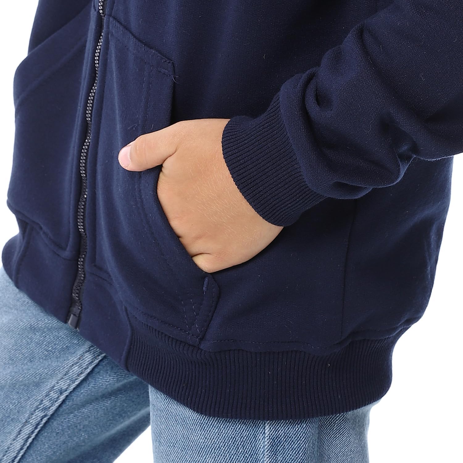 سويت شيرت سادة بغطاء للرأس وأكمام طويلة وجيوب جانبية للأولاد من اندورا