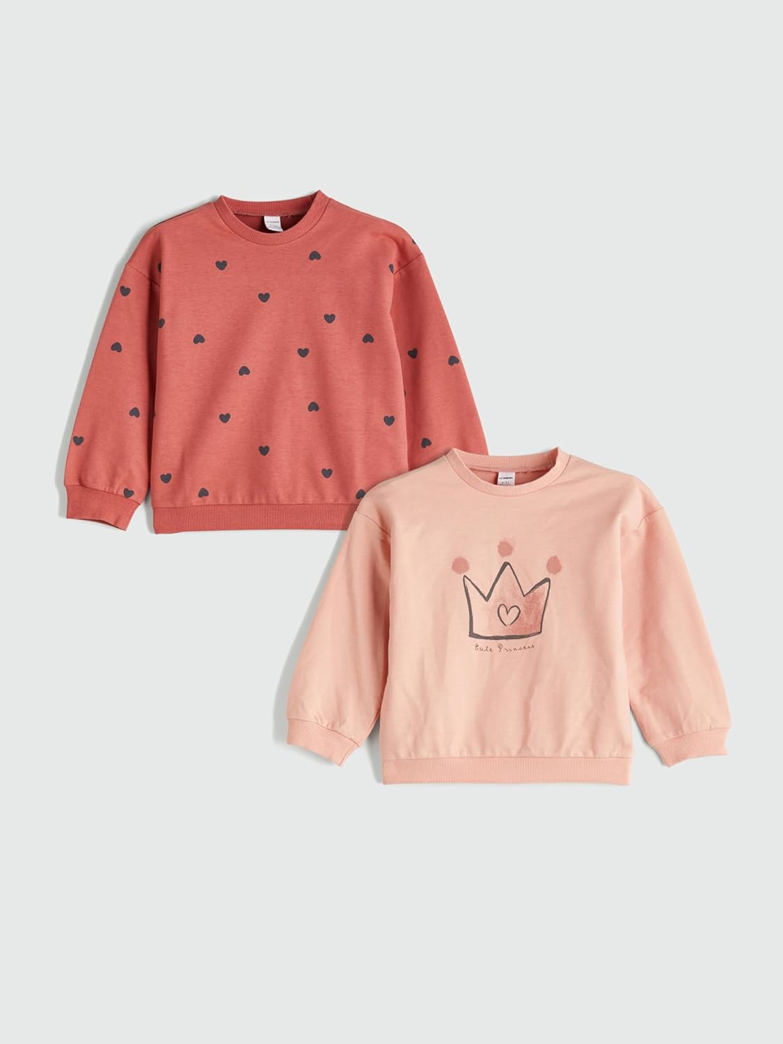 شراء سويت شيرت مطبوع برقبة دائرية ضيقة وأكمام طويلة للبنات من ال سي وايكيكي، قطعتين اون لاين من امازون او نون سويت شيرت مطبوع برقبة دائرية ضيقة وأكمام طويلة للبنات من ال سي وايكيكي، قطعتين