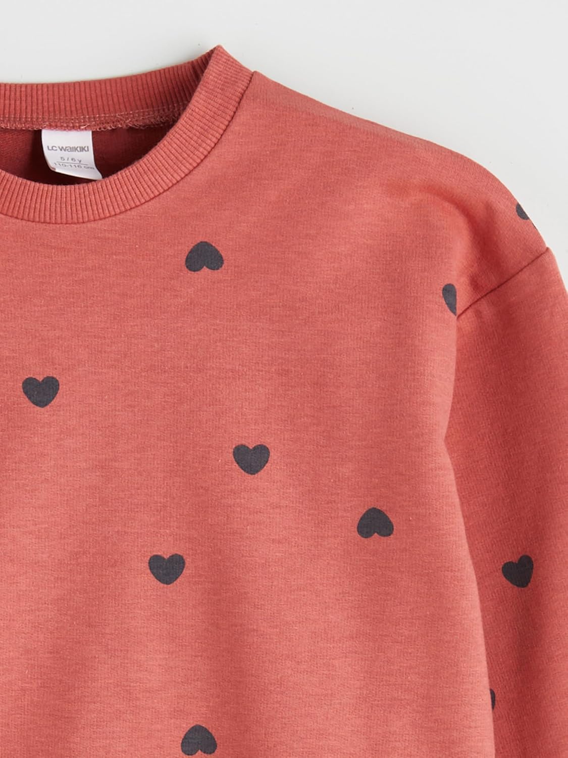 سويت شيرت مطبوع برقبة دائرية ضيقة وأكمام طويلة للبنات من ال سي وايكيكي، قطعتين