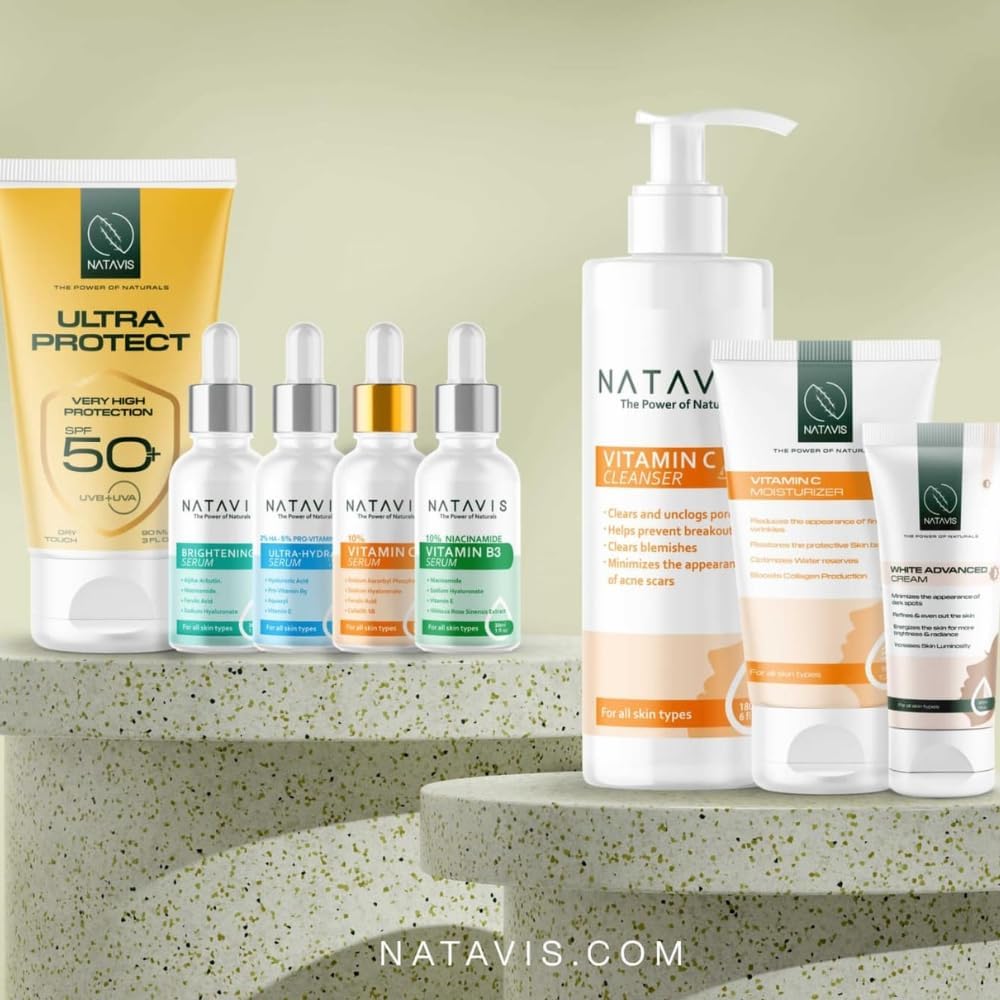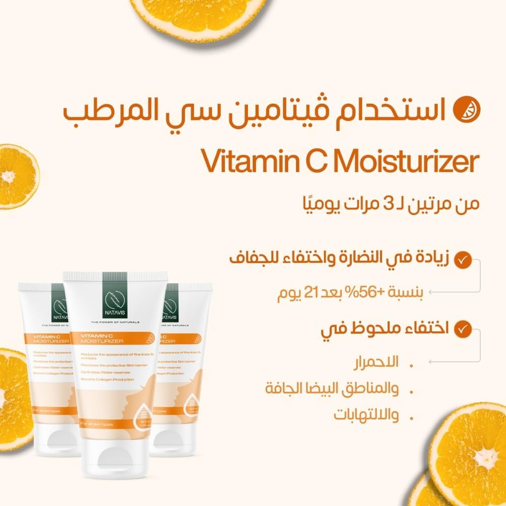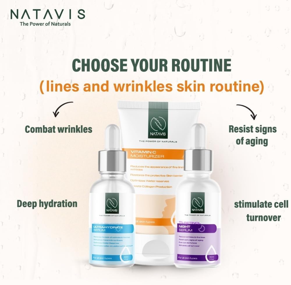 سيروم ريتينول 1% من ناتافيس 30 مل مع مرطب فيتامين سي 50 مل، مع حمض الهيالورونيك، اكواكسيل، مضاد لعلامات تقدم السن، يقوي حاجز واقي البشرة، يرطب ويعزز الكولاجين – روتين العناية بالبشرة الليلي