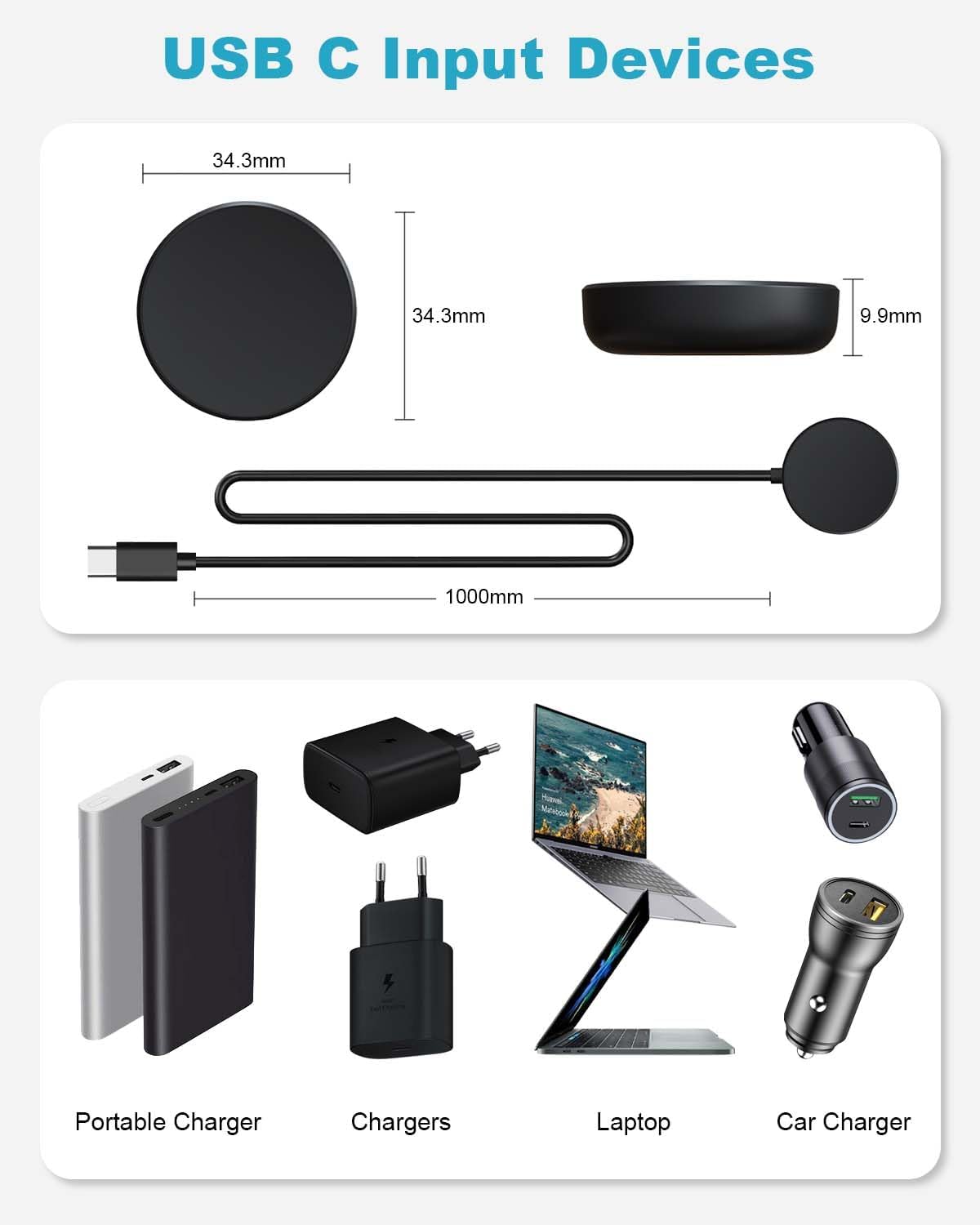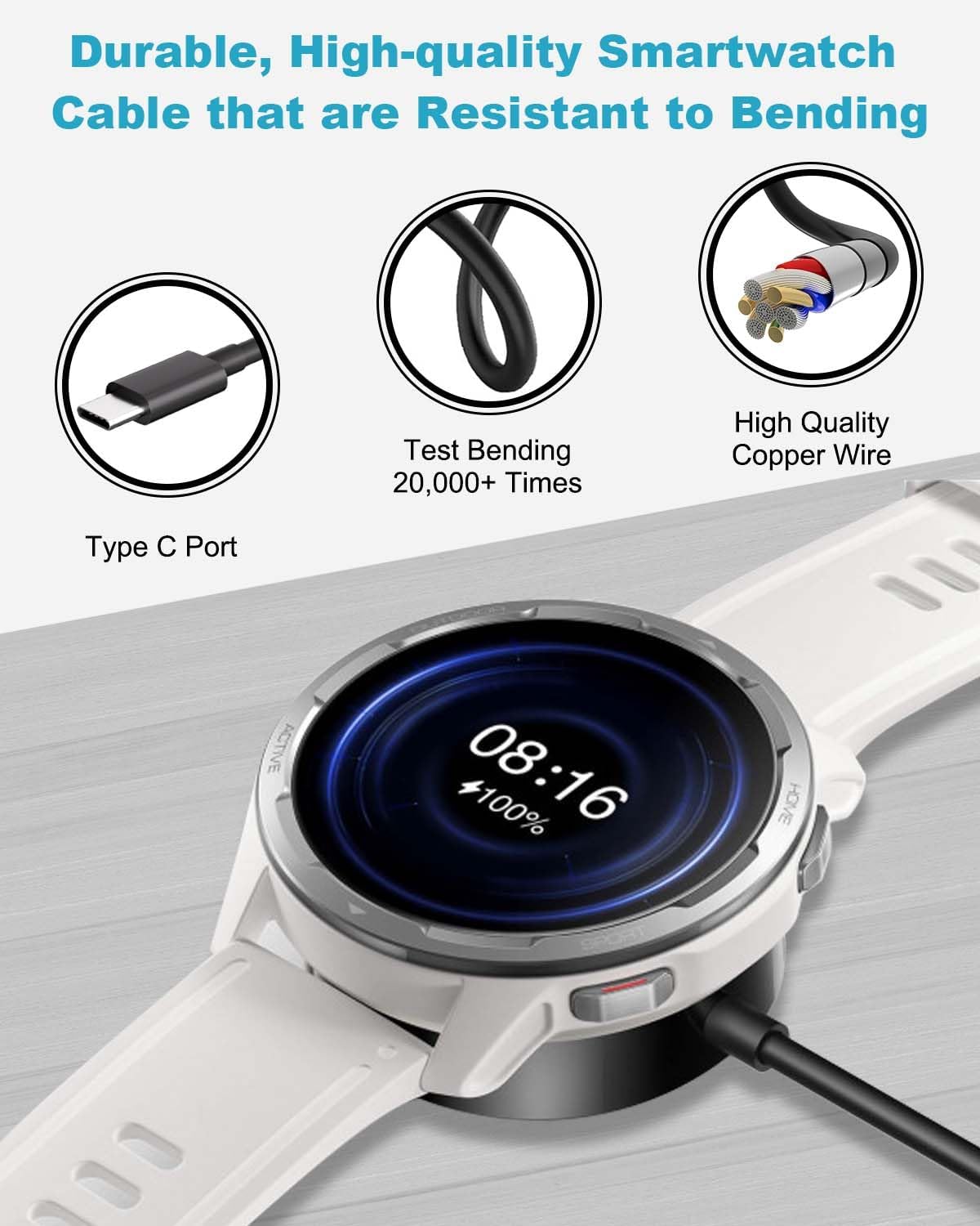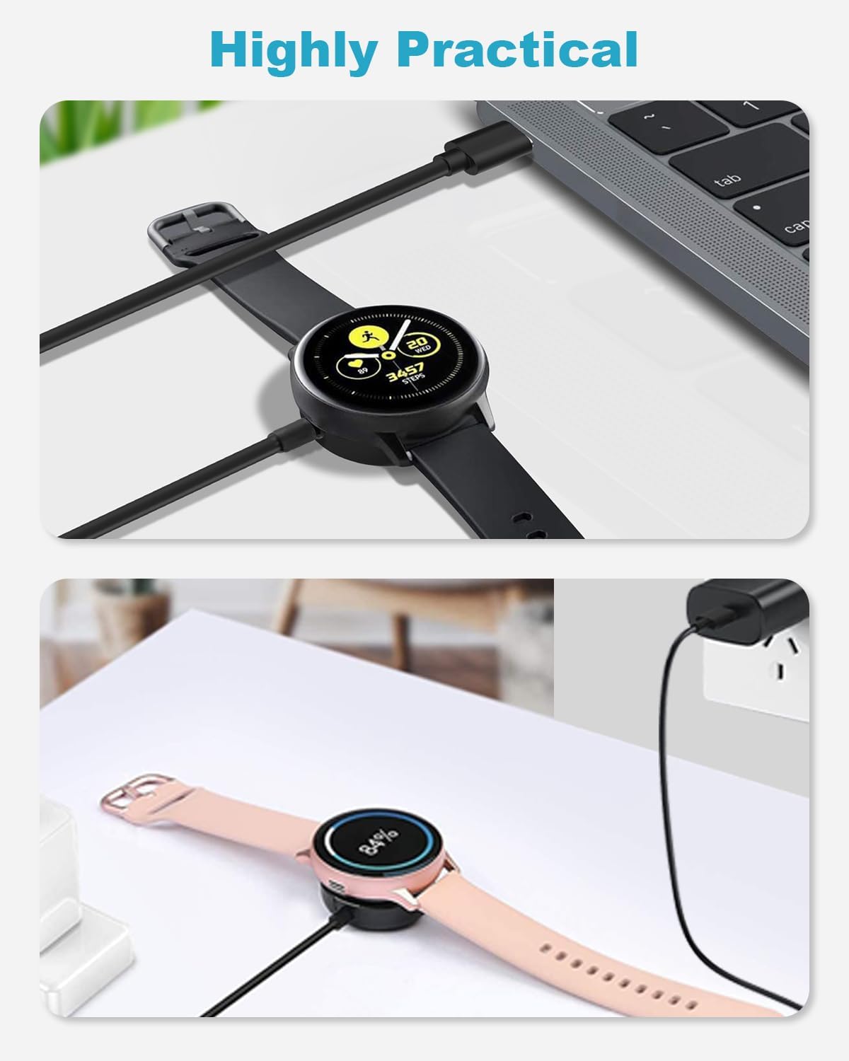 تصميم عملي لشاحن ساعة سامسونج: تتميز قاعدة شحن ساعة جالاكسي 6 بسطح أملس مصقول لحماية ساعة جالاكسي الخاصة بك من الاحتكاك. يتمتع كابل شحن ساعة جالاكسي بعمر خدمة يزيد عن 20000 دورة، وتم تعزيز كابل التوصيل لمزيد من المرونة والمتانة. يحتوي كابل شحن ساعة جالاكسي 4 على منفذ USB-C ويمكن استخدامه مع أجهزة مثل الشواحن والبطاريات وأجهزة التابلت التي تحتوي على منفذ USB-C.