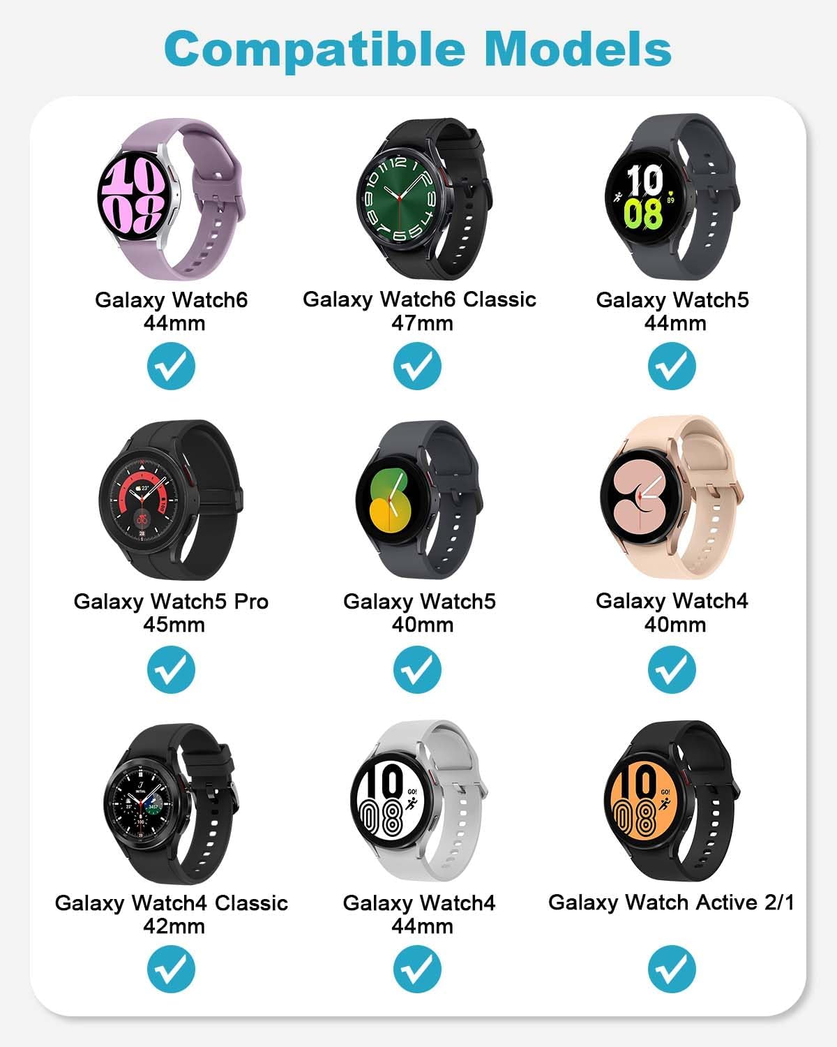 قابلية الاستخدام مع شاحن ساعة سامسونج جالاكسي: كابل الشحن الذكي مناسب لساعة سامسونج جالاكسي 7 (40 ملم/44 ملم)، ووتش الترا (47 ملم)، ساعة جالاكسي 6 (40 ملم SM-R930)/6 كلاسيك (42 ملم SM-R950)/ووتش 5 برو 45 ملم/ووتش 5 40 ملم/44 ملم، ووتش 4 (40 ملم (SM-R860 44 ملم SM). -R870/RRSM-875)، ووتش 4 كلاسيك (42 ملم SM-R880، 46 ملم SM-R890/SM-R895)، ووتش 3 SM-R850 (41 ملم)، ووتش 3 SM-R840 (45 ملم)، ووتش اكتيف 1 SM-R500 (40 ملم)، ووتش اكتيف 2 SM-R830 (40 ملم), ساعة اكتيف 2 SM-R830 (40 ملم)، ساعة اكتيف 2 SM-R830 (40 ملم)، ساعة اكتيف -R820 (44 ملم).