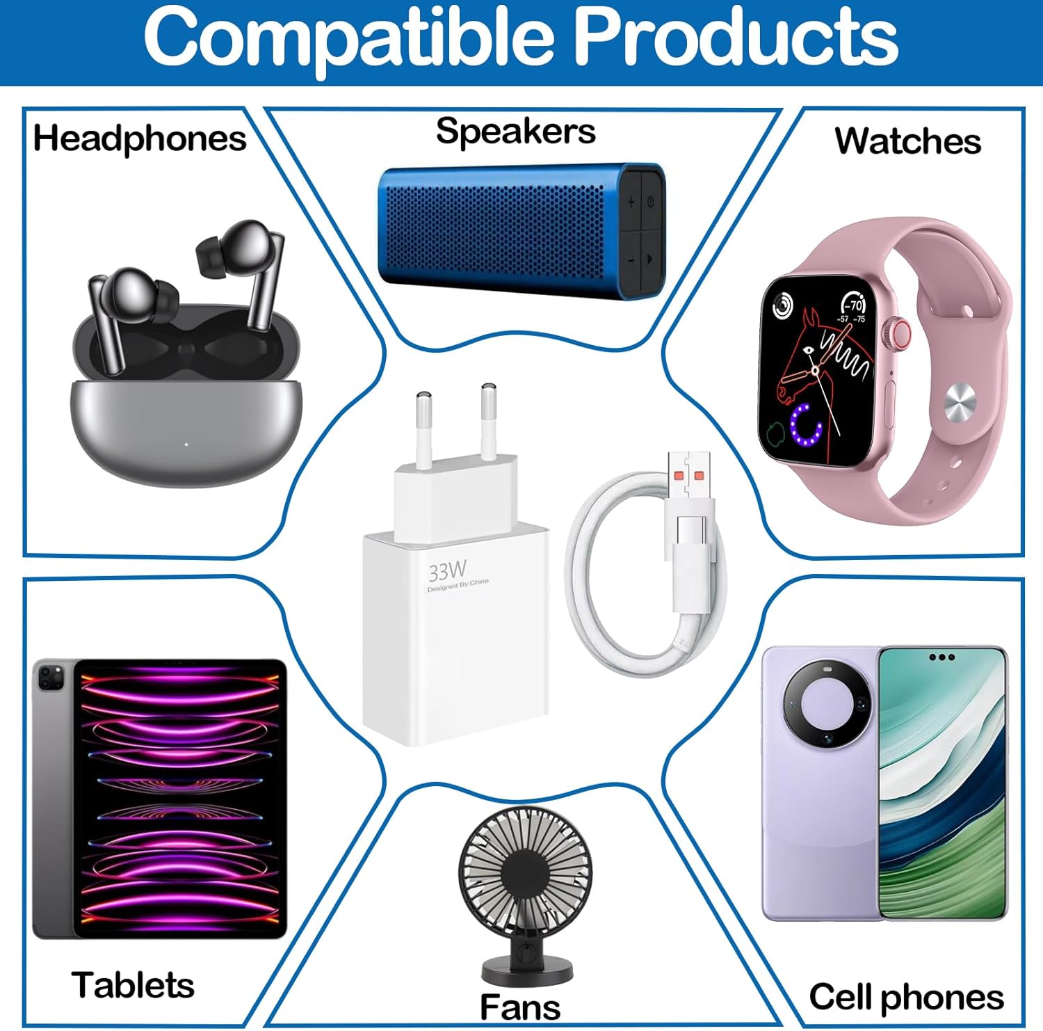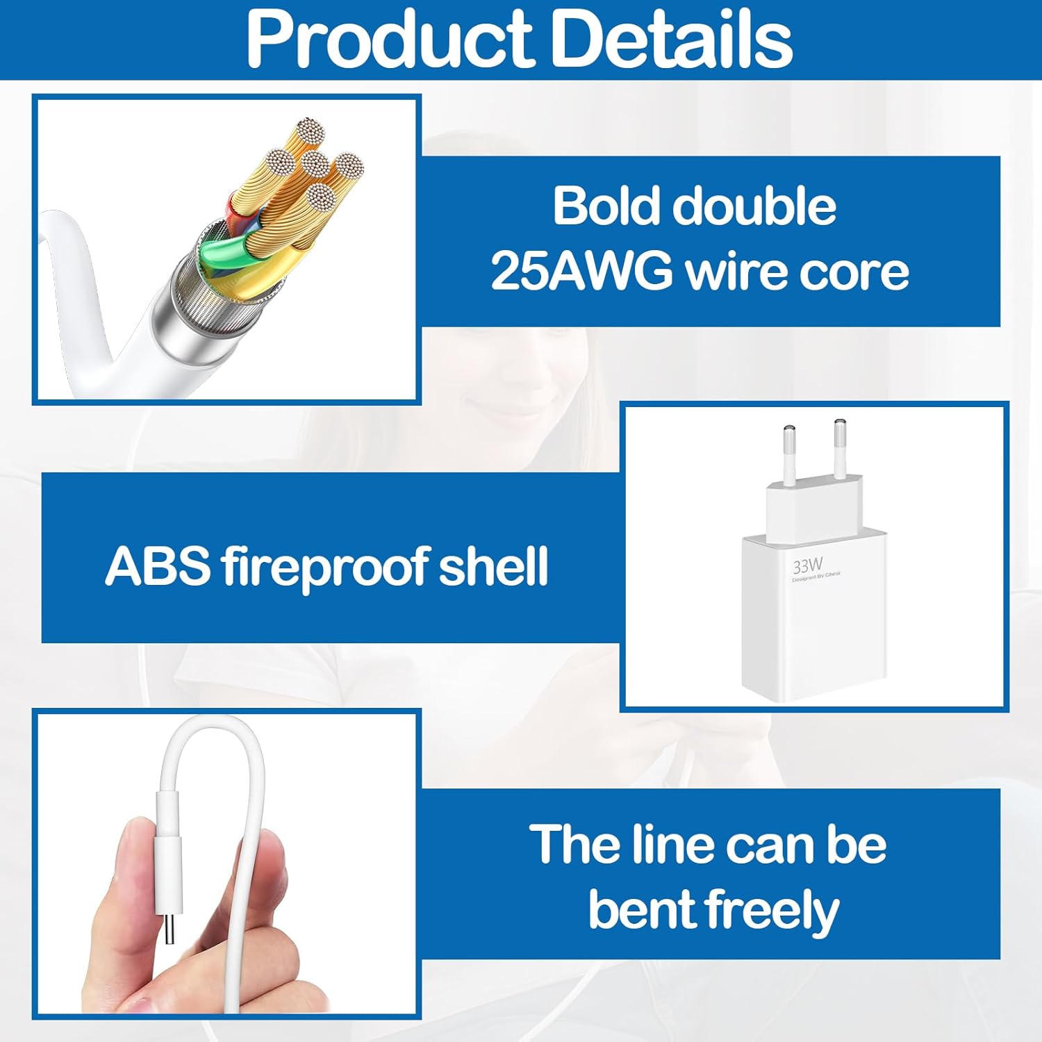 【شحن سريع】تم تطوير هذا الشاحن بقدرة 33 واط خصيصًا لشاومي. متوافق مع شاومي ريدمي نوت 11/11S/12/13/9/9 برو/10 برو/10S/11T لايت، شاومي مي 10T/11 لايت/10/10 لايت/10T لايت/10T برو وشاومي بوكو X3/F3/F2 برو/X5/X6/M5/C65.