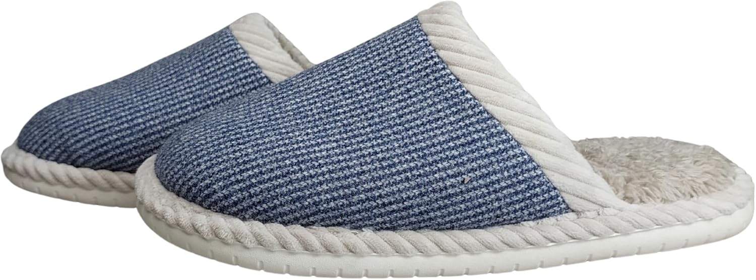 شبشب منزلي من ميموري فوم للرجال، مبطن بالفرو الدافئ، ازرق، مقاس 46/47 – لكلوك رجالي شتوي فرو دافئ