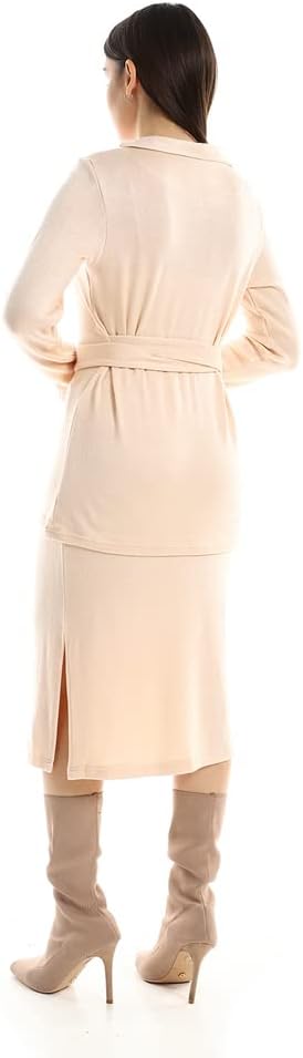 طقم جيبة مفتوحة للنساء بفتحات جانبية مع توب دائري سادة من جميلة