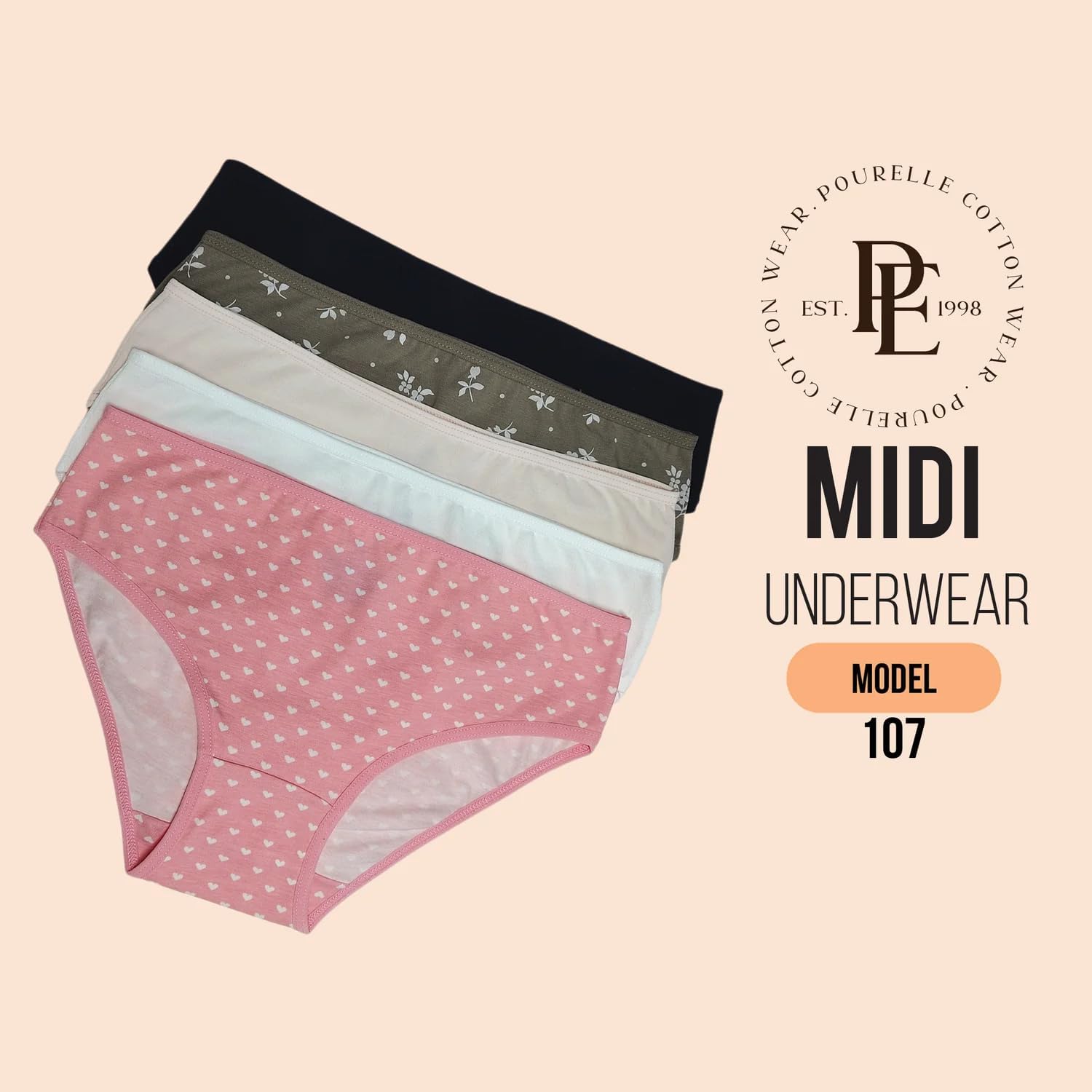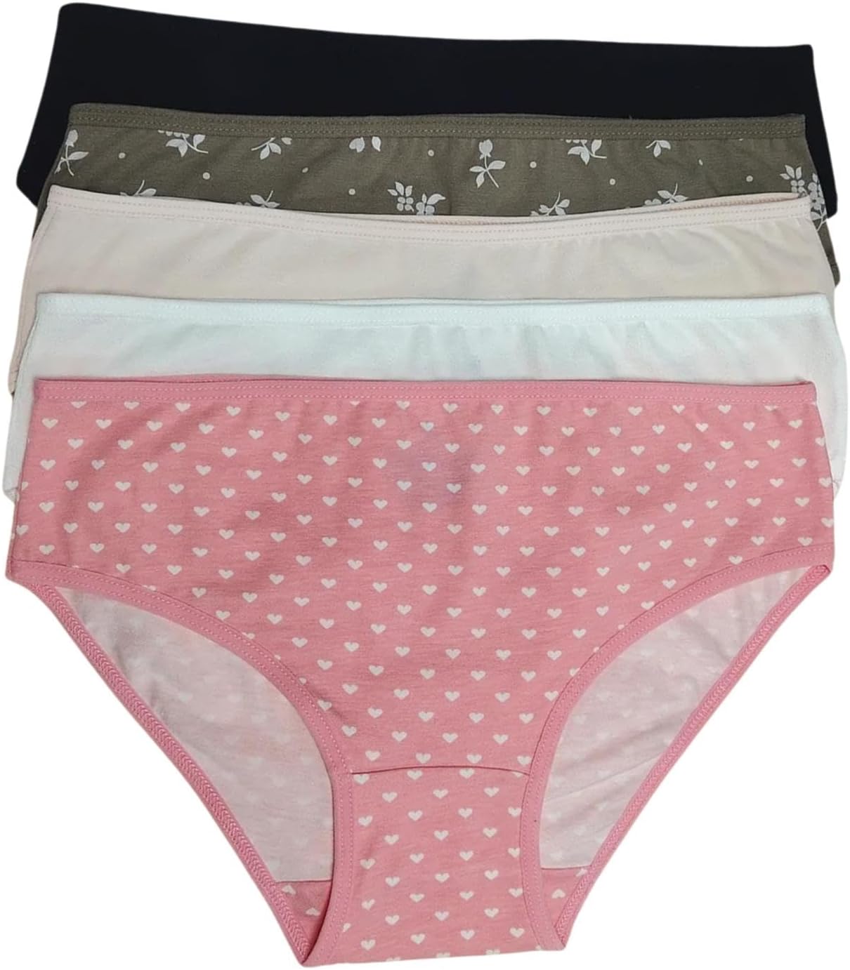 استمتع بالراحة القصوى مع هذه العبوة المكونة من 5 قطع من السراويل الداخلية القطنية عالية الخصر للنساء. تتميز المجموعة بمجموعة متنوعة من الألوان والأنماط الجميلة، بما في ذلك الأسود الكلاسيكي والزيتوني مع مطبوعات الزهور الرقيقة والبيج المحايد والأبيض النقي والبينك الساحر مع أنماط قلب. هذه السراويل الداخلية مصنوعة من مادة قطنية ناعمة توفر راحة جيدة التهوية طوال اليوم. يوفر التصميم عالي الخصر تغطية ممتازة وملاءمة آمنة لن تتدحرج. يتميز كل زوج بحزام خصر مطاطي مريح يستقر بسلاسة على البشرة دون أن يحفر. يتيح لك اختيار الألوان المتنوعة التنسيق مع الملابس المختلفة مع الحفاظ على راحة ثابتة. مثالية للارتداء اليومي، تجمع هذه السراويل الداخلية بين العملية والأناقة الأنثوية. يضمن الهيكل القطني سهولة العناية والصيانة للارتداء طويل الأمد. متوفرة بمقاسات متعددة، تعد مجموعات الملابس الداخلية هذه إضافة ممتازة لخزانة ملابسك الأساسية اليومية.