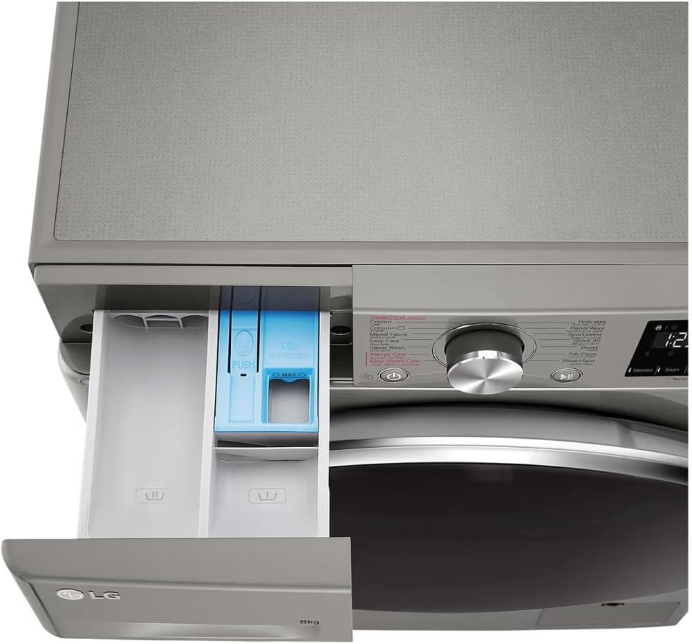 شراء غسالة ذات تحميل أمامي 8 كجم بتقنية الذكاء الاصطناعي التشغيل المباشر (DD) والبخار – 6 حركات من سلسلة فيفاس ال جي F4R3TYGCP، فضي اون لاين من امازون او نون غسالة ذات تحميل أمامي 8 كجم بتقنية الذكاء الاصطناعي التشغيل المباشر (DD) والبخار – 6 حركات من سلسلة فيفاس ال جي F4R3TYGCP، فضي