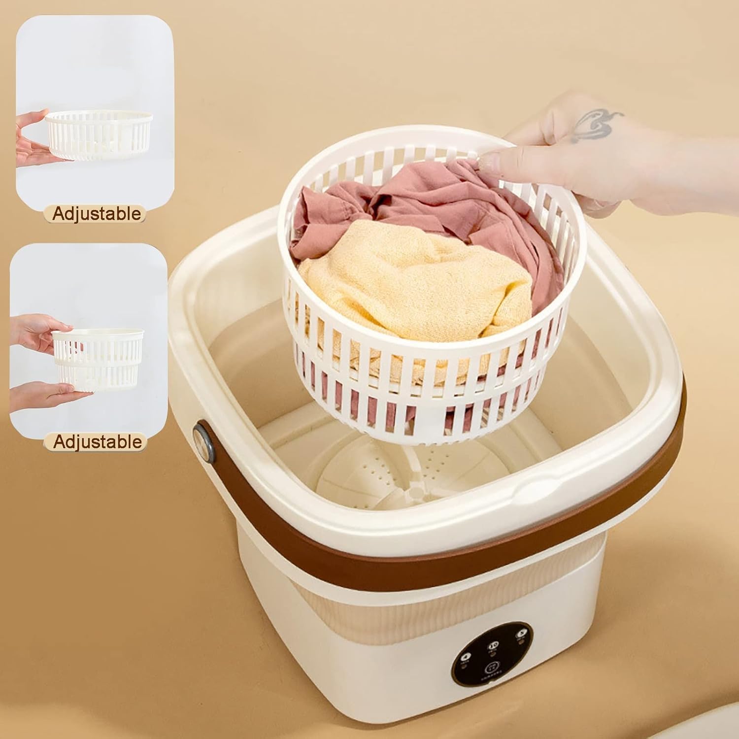The small machine can be folded and stored to save space. Hidden carry handle, you can easily lift your washing machine.