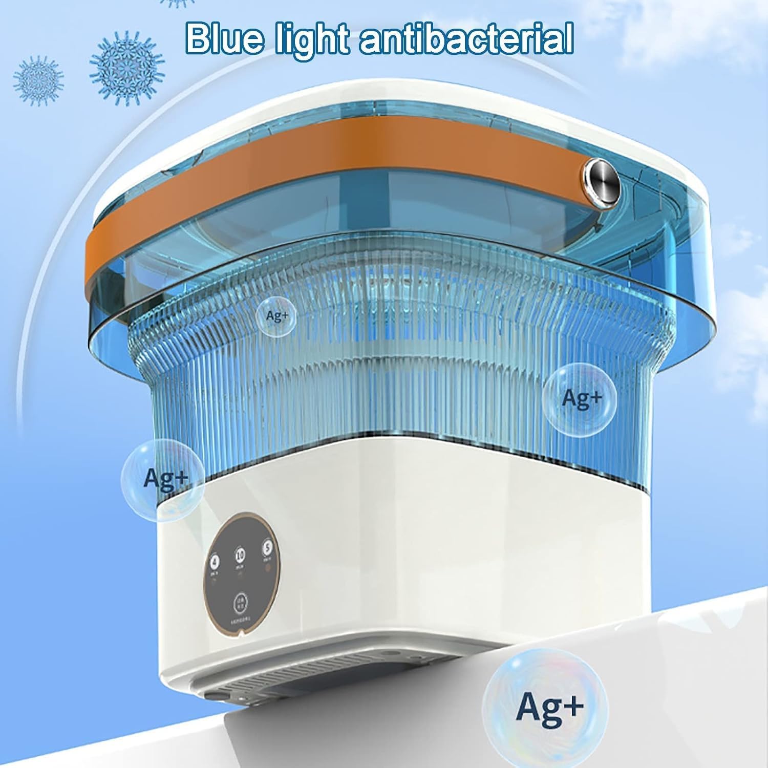 The automatic wash has a capacity of 16 liters, it can wash underwear, baby clothes, socks pairs, short sleeves and other small clothes. Our portable washing machine use blue light sterilization, effective invisible bacteria on clothing, which can protect your health.