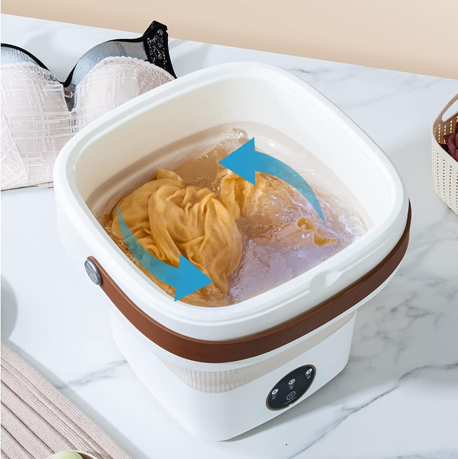 【Foldable Design】The mini washing machine can be folded and stored to save space. Concealed carry handle, you can easily lift the washing machine. It can be easily stored in your car or luggage 【Three Modes & Low Noise】 The mini washing machine has three modes: a standard wash cycle that lasts 10 minutes/15 minutes and drying clothes for 3 minutes. One-touch control of the washing machine is easy to operate, energy saving and environmentally friendly. This portable washing machine works with less noise and is quieter and more stable. 【18L Portable Washer】The automatic washing machine has a capacity of 18L, can wash underwear, baby clothes, pairs of socks, short sleeves and other small clothes.