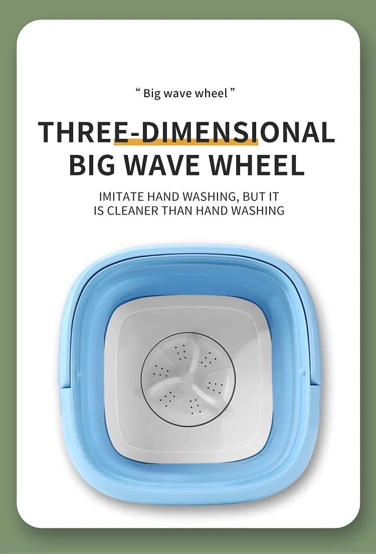 غسالة صغيرة محمولة قابلة للطي بحوض غسيل للملابس شكل جردل دوار صغير وعملي، تحميل علوي، متعدد الألوان