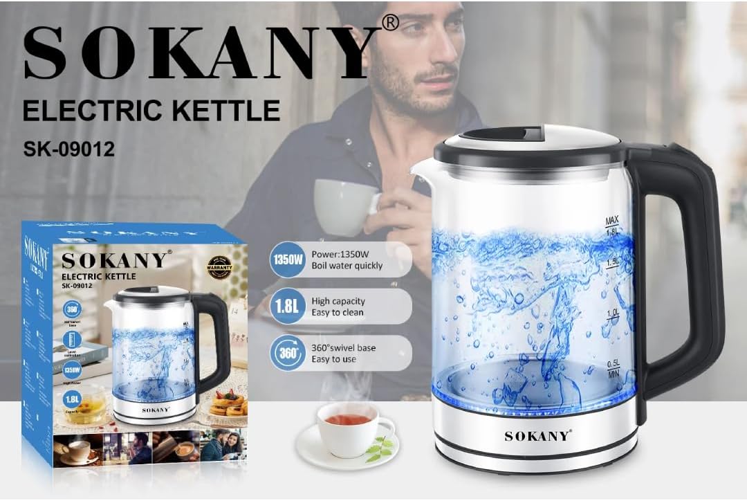 سوكاني غلاية كهربائية زجاجية/بايركس 1.8 لتر – 1500 وات SK-09012