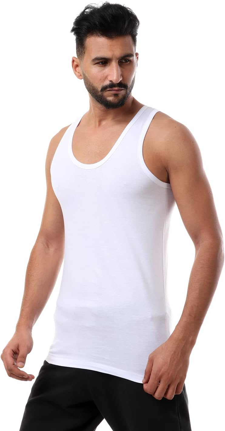 شراء فانلة داخلية سادة برقبة دائرية بدون اكمام للرجال, أبيض, 4XL، من قطونيل اون لاين من امازون او نون فانلة داخلية سادة برقبة دائرية بدون اكمام للرجال, أبيض, 4XL، من قطونيل