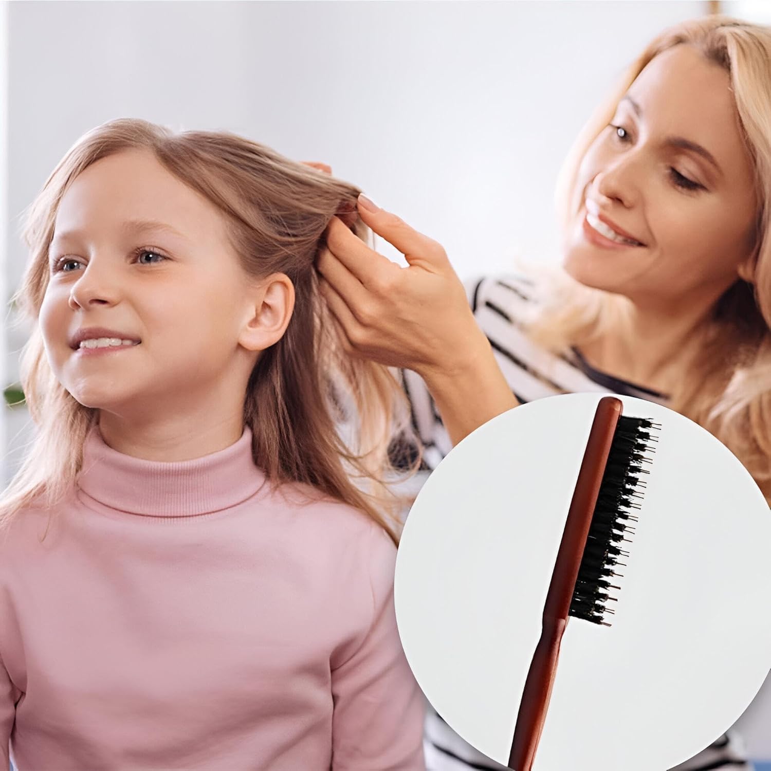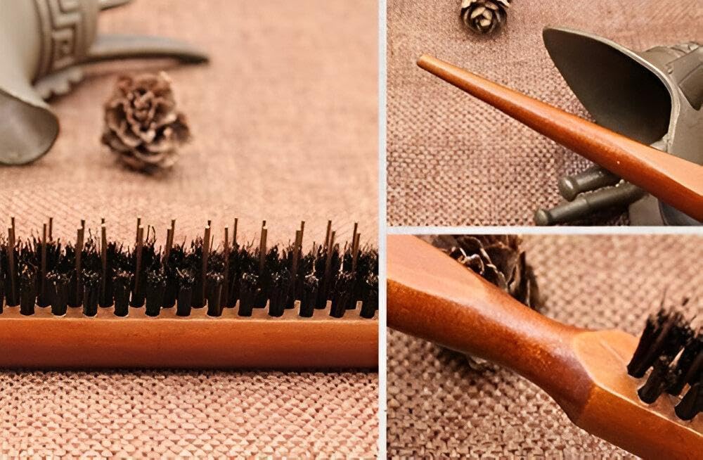 تصميم احترافي: فرشاة بمقبض خشبي مع شعيرات نايلون مزدوجة مصممة لتصفيف الشعر والتحكم فيه بشكل فائق أثناء القص أو التجفيف بالمجفف.
