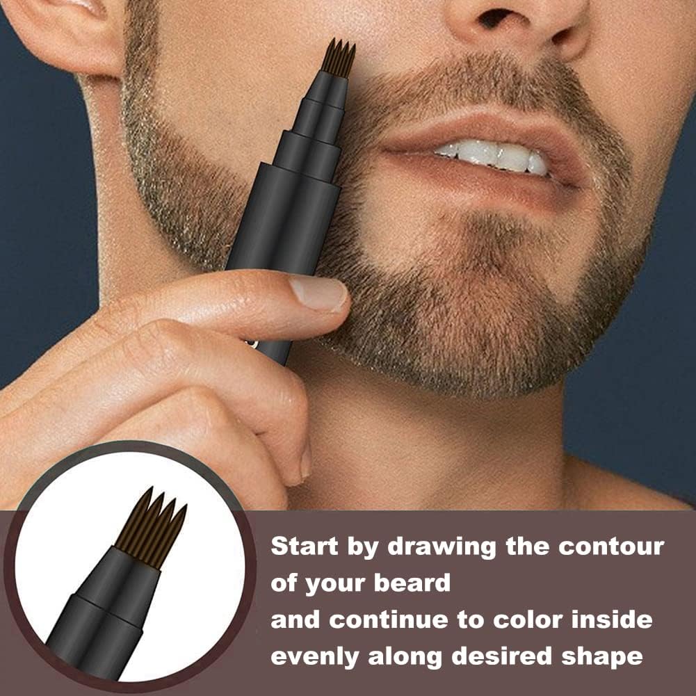 قلم ملء فراغات اللحية، قلم اللحية للرجال، قلم ملء فراغات اللحية للرجال مع فرشاة لحية ذات شعيرات، قلم تحديد اللحية بسهولة بملء الفراغات للرجال (لون بني)