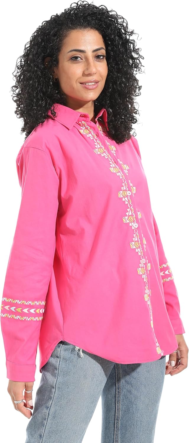 قميص بياقة مطوية لأسفل للنساء بأزرار للاغلاق بنمط غربي من اندورا