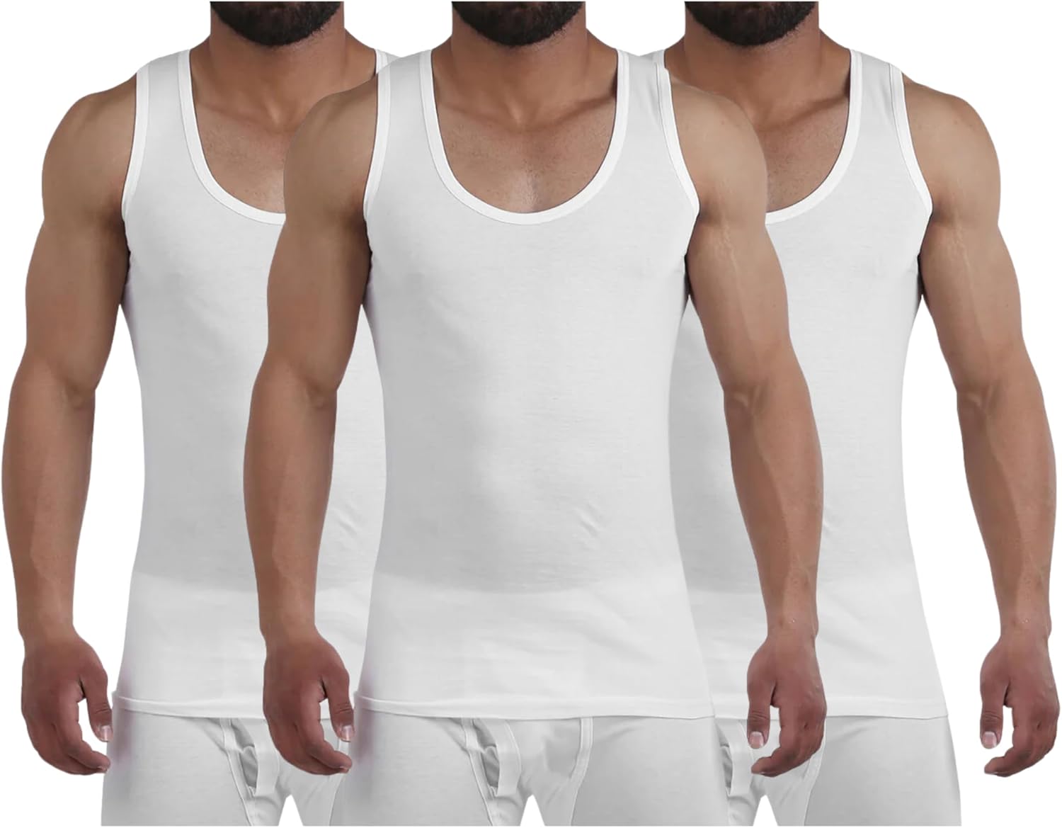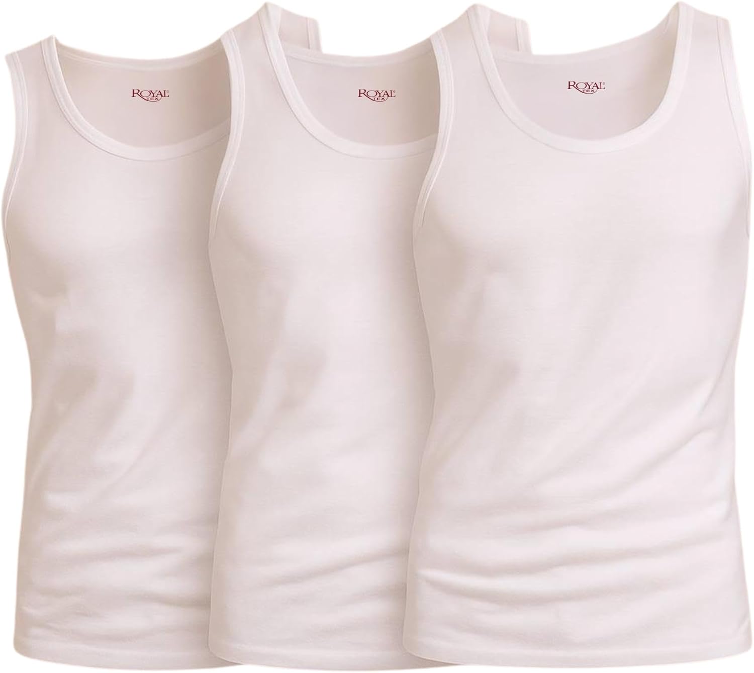 قميص داخلي بدون اكمام من القطن بنسبة 100% للرجال من رويال تيكس، عبوة من 3 قطع (لون ابيض، مقاس XL/5)