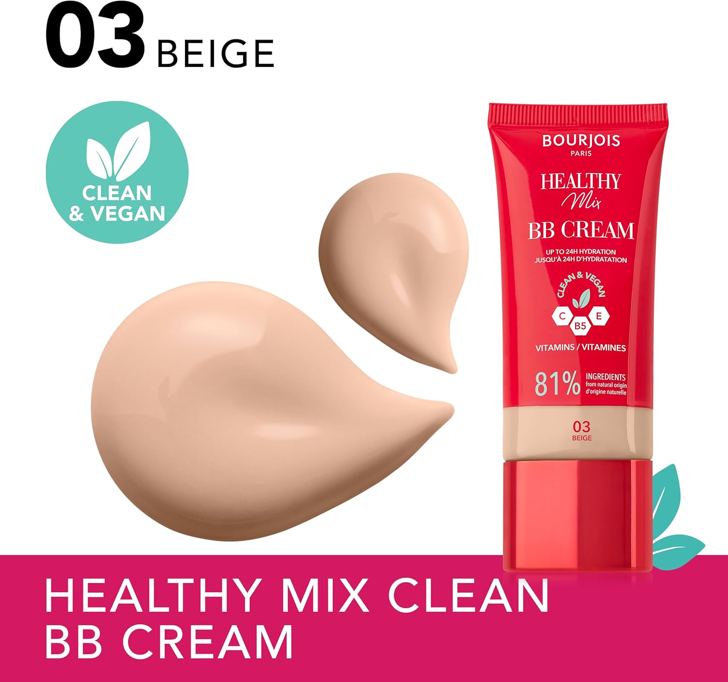 بورجوا يواصل وضع معيار بي بي مع كريم بي بي هيلثي ميكس. يصبح بي بي هذا خيارك الأمثل للحصول على بشرة خالية من العيوب وموحدة بشكل طبيعي مما يمنحك تلك التغطية المشرقة والمتساوية التي تحبها مع دفعة إضافية من فوائد العناية بالبشرة. يعمل على توحيد لون البشرة دون عناء ويطمس المسام، بينما يخفي بشكل فعال علامات التعب ويقلل من العيوب والبقع الداكنة والاحمرار. مع مكونات طبيعية بنسبة 81%، توفر التركيبة النباتية النظيفة لمسة نهائية طبيعية لا تشوبها شائبة وراحة طوال اليوم. يتميز بشيساندرا بيري لتهدئة البشرة، العدس الأخضر لشد المسام وامتصاص الزيت الزائد، ومزيج الفيتامينات C وE وB5 للحصول على تأثير مضاد للأكسدة. العلامة التجارية الفرنسية الأيقونية لمستحضرات التجميل والعطور، تتمتع بورجوا بتراث عميق الجذور في الجمال الباريسي المبهج منذ 160 عامًا. نحن نمكّن النساء ونلهمهن لكي يكونوا مرحين وتجربة المكياج، لأننا نؤمن أنه كلما استمتعت بنفسك أكثر، كلما كنتِ أكثر جمالاً. تم توزيعها في 39 سوقًا في جميع أنحاء العالم، وقد أثبتت بورجوا نفسها كواحدة من أساتذة ابتكار المكياج، وكخبراء ألوان حقيقيين. من ليتل راوند بوت إلى ماسكارا تويست اب ذا فوليوم نصنع منتجات ترسم الابتسامة على وجهك. كل منتج هيلثي ميكس نظيف ومعرف بأنه تركيبة جيدة للبشرة، ويحتوي على مكونات ذات أصل طبيعي، وهو نباتي وخالي من المكونات المشتقة من الحيوانات أو المنتجات الثانوية الحيوانية. تتضمن جميع عبوات المنتجات محتوى معاد تدويره بعد الاستهلاك.